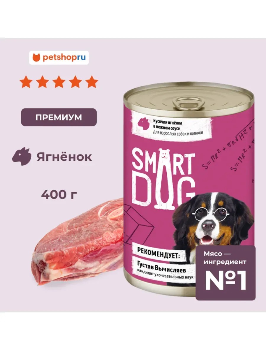Smart Dog Консервы для взрослых собак и щенков с ягненком, 400 г, влажный корм