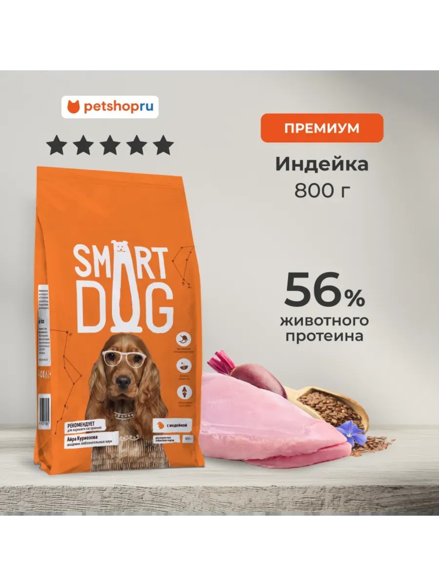 Smart Dog Сухой корм для взрослых собак всех пород с индейкой, 0,8 кг
