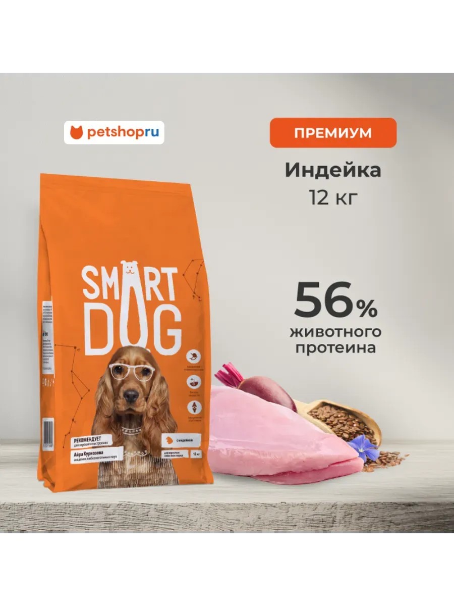 Smart Dog Сухой корм для взрослых собак всех пород с индейкой,12 кг