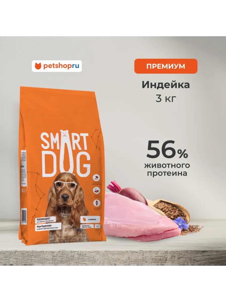 Smart Dog Сухой корм для взрослых собак всех пород с индейкой, 3 кг
