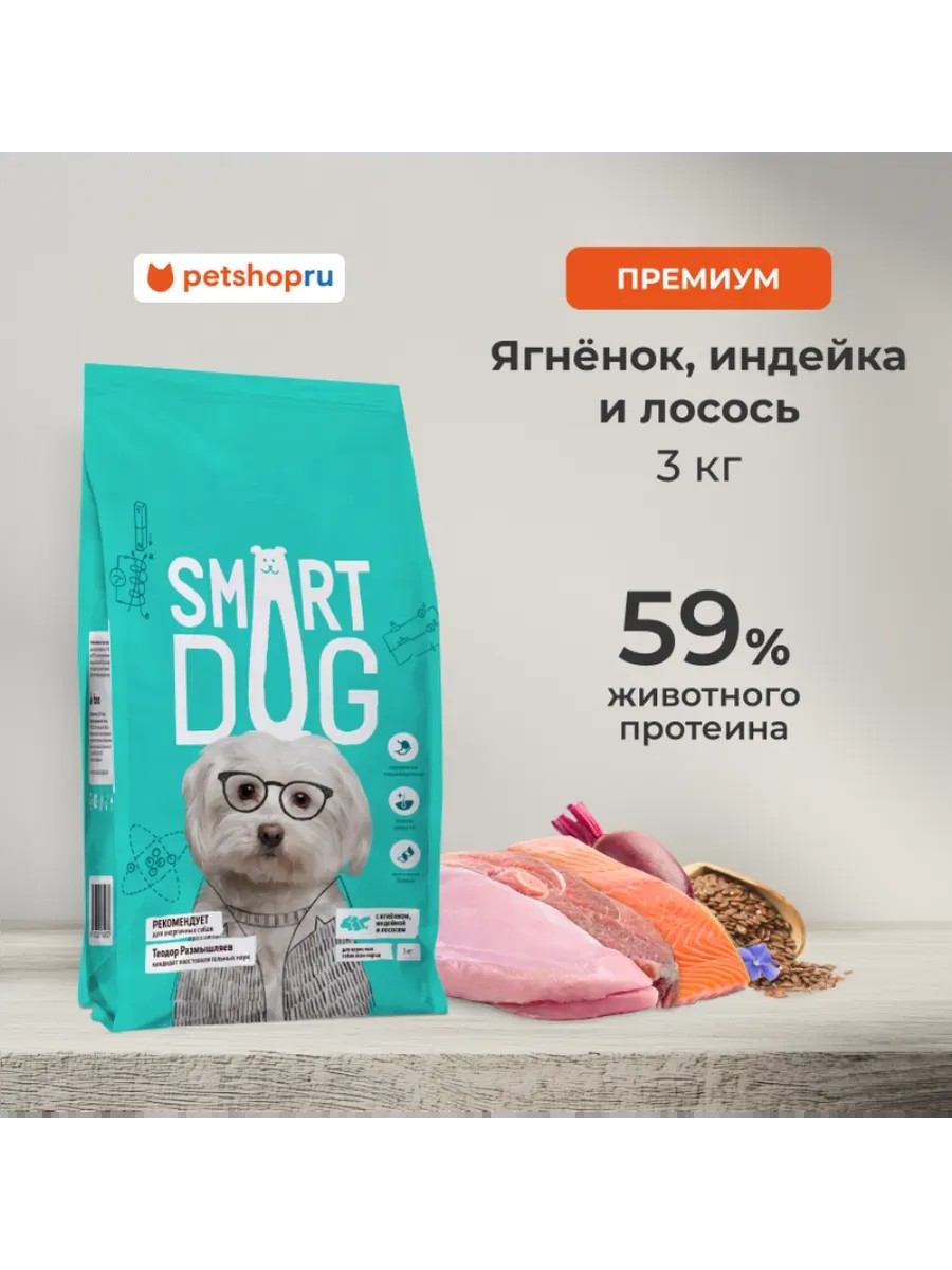 Сухой корм Smart Dog разработан профессионалами для настоящих пушистых гениев! Полнорационный и сбалансированный корм с тщательно подобранным составом и необходимым комплексом питательных веществ поможет сохранить здоровье и активность Вашего питомца для достижения великих целей! Изготовлен без добавления искусственных красителей, консервантов, ароматизаторов и ГМО.