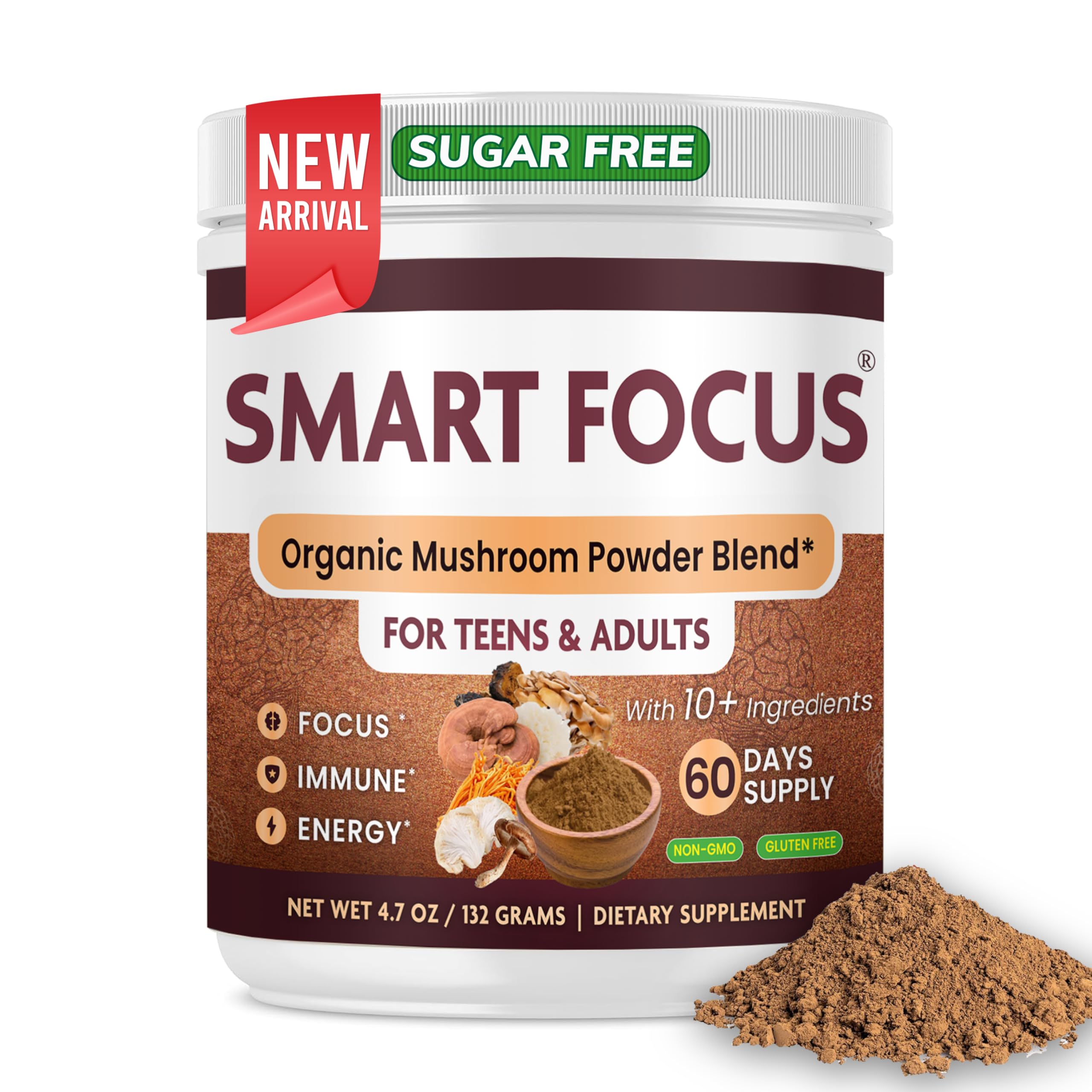 GMP Tested, Non-GMO, Made in USA - All-in-one Smart Focus Mushroom Supplement Blend Helps Provide Steady Energy Without Caffeine Or Artificial Stimulants. Smart Focus Is Your Daily Companion For Focus, Energy, And Mental Clarity That Lasts Naturally. . Trusted Quality Safety First- Smart Focus Lions Mane Powder Is Third-party Lab Tested, Non-GMO, Gluten-free, And Formulated In The USA In A GMP-certified Facility. Crafted With Responsibly Sourced Ingredients—because What You Put In Your Body Matters. . Easy to Use, Smooth Flavor-Free- Enjoy The Simplicity Of Our Unflavored Lions Mane Supplement That Blends Effortlessly Into Mushroom Coffee, Tea, Smoothies, Or Recipes. With No Sugar, No Artificial Flavors, And No Weird Aftertaste, Each Serving Supports Steady Energy Without Jitters—perfect For Anyone Who Prefers Drinkable Options Over Mushroom Gummies Capsules. . Premium Quality Plant-Based Mushroom Complex - Each Scoop Delivers A Balanced Mix Of Lion's Mane, Reishi, Cordyceps, Chaga, Turkey Tail, Maitake, Shiitake. This Natural Formula Supports Memory Function, Cognitive Balance, And Overall Immune Health. Designed As A Complete Brain Health Supplement For Adults, It Combines Traditional Mushroom Wisdom With Modern Nutritional Science. . Mushroom Powder for Immunity Support, Focus Clarity - Smart Focus Supplement For Adults Support Brain Health, Memory And Focus. Formulated With 8 Mushroom Extracts Designed For Sustained Focus, Immune Support.