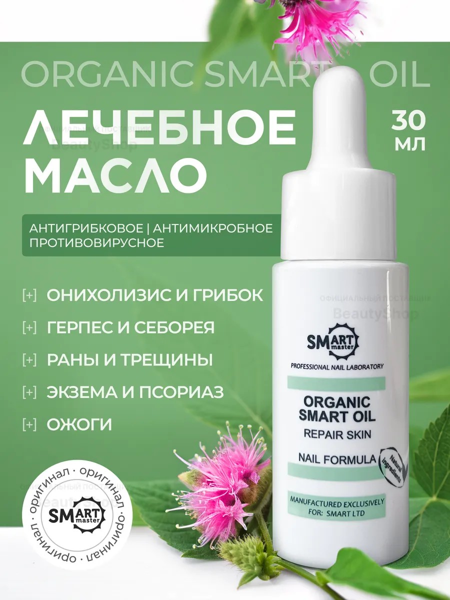 Лечебное масло монарды Organic Smart oil от Smart Master — это натуральный помощник для здоровья и красоты вашей кожи и ногтей. Богатый состав масла, включающий экстракт чистотела, ромашки, витамины A и E, масло монарды и молекулярный проводник, обеспечивает комплексный уход. Оно эффективно борется с грибковыми инфекциями, способствует заживлению ран и трещин и глубоко питает кожу. Эффективно помогает при ожогах и герпесе. Идеальное средство от онихолизиса, экземы, грибка и сухости кожи. Смарт масло подходит для использования на коже головы, руках и ногах, помогая восстановить ее здоровый вид и вернуть комфорт. Укрепляет ногтевую пластину и замедляет рост кутикулы. Идеально от прыщей, акне и укусов насекомых. Масло монарды для ногтей