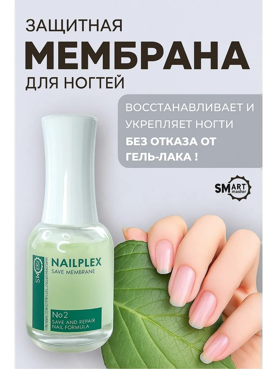 На очищенную ногтевую пластину после полного снятия искусственного покрытия нанести мембрану в 2 слоя. Сушить 1 мин в LED лампе или 5-10 мин на воздухе. Для более сильного эффекта необходимо использовать в комплексе с NAILPLEXN 1.