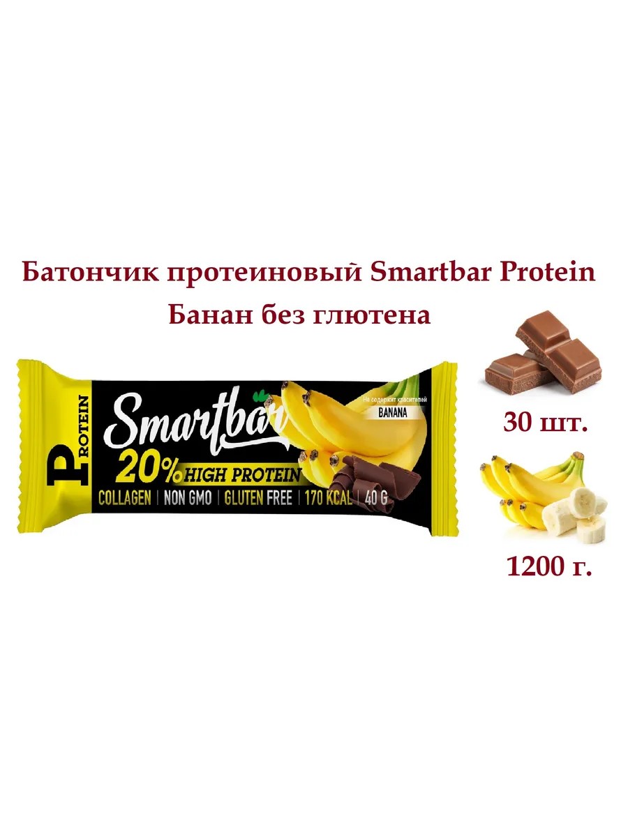 Полное наименование товараБатончик протеиновый Smartbar Protein Банан без глютена