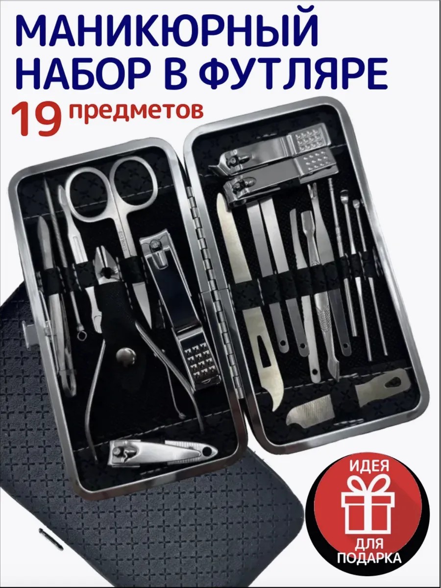 Представляем маникюрный набор из 19 предметов в стильном дорожном футляре! : Испытайте воплощение роскоши ухода с нашим маникюрным набором из 19 предметов. Этот тщательно созданный набор предназначен для удовлетворения всех ваших потребностей в уходе за ногтями, обеспечивая идеально ухоженные руки и ноги, не выходя из дома или в дороге. Этот маникюрный набор, заключенный в гладкий и элегантный дорожный футляр, является не только функциональным must-have, но и модным аксессуаром. Ключевая особенность: Инструменты из нержавеющей стали высшего качества: каждый инструмент в этом наборе мастерски изготовлен из высококачественной нержавеющей стали, что гарантирует долговечность, точность и устойчивость к ржавчине и коррозии. Попрощайтесь с хлипкими, ненадежными аксессуарами для ухода за ногтями. Комплексный набор из 19 предметов: этот набор включает в себя универсальный набор инструментов, включая кусачки, ножницы, пилку, толкатель для кутикулы, нож для кутикулы и многое другое. Какой бы ни была задача, в нашем маникюрном наборе есть идеальный инструмент для нее. Эргономичный дизайн: Инструменты разработаны с учетом удобства и точности. Эргономичные ручки обеспечивают удобный захват, обеспечивая точный контроль и легкое использование во время ухода за ногтями. Элегантный дорожный футляр: наш маникюрный набор поставляется в стильном и прочном дорожном футляре, который идеально подходит для организации и защиты инструментов. Корпус компактный и легкий, что делает его удобным для путешествий и хранения. Идеальный подарок: Ищете продуманный подарок для любимого человека? Этот маникюрный набор — идеальный выбор для дня рождения, праздника, юбилея или любого другого случая, ведь он сочетает в себе функциональность, стиль и практичность. Дизайн унисекс: подходит как мужчинам, так и женщинам, этот набор для маникюра предназначен для удовлетворения потребностей каждого в уходе.