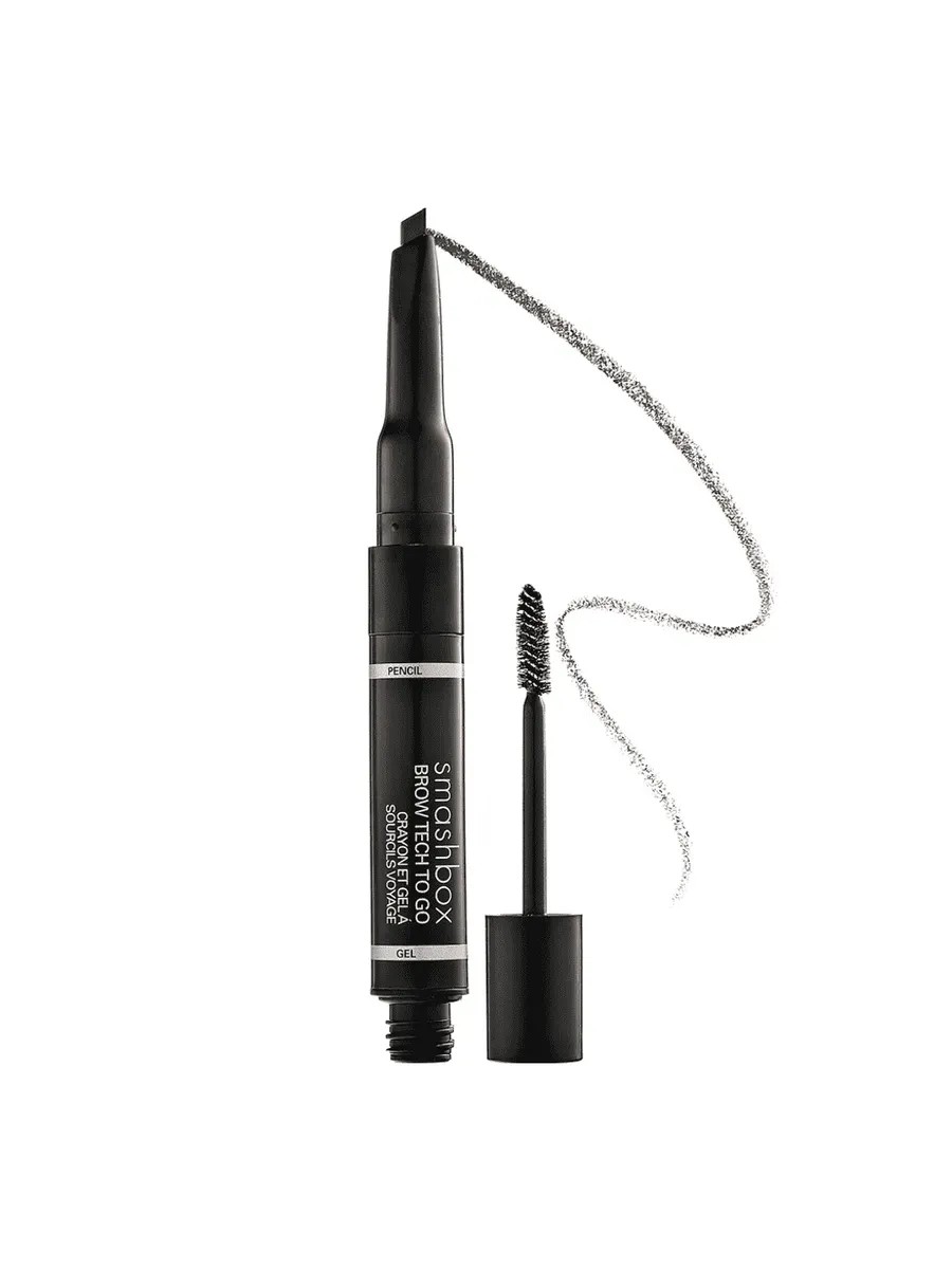 SMASHBOX BROW TECH TO GO Double-Ended Eyebrow Pencil in Brunette 2.9g / 0.2g. This dual-ended, angled eyebrow pencil creates perfectly shaped brows wherever you are. Smashbox's soft-hold eyebrow gel and applicator brush perfectly define brows. Precise application. Perfectly shaped brows with Smashbox.