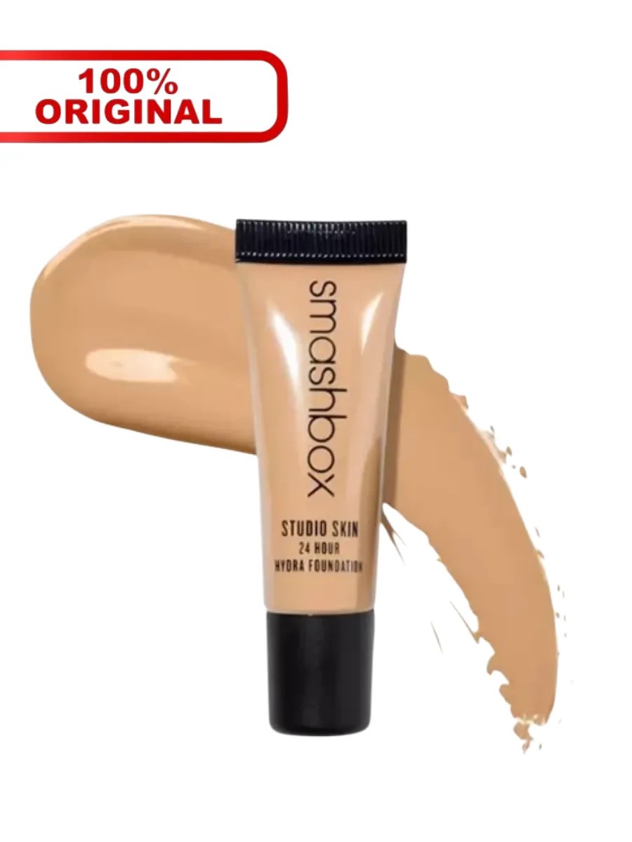 MINI Studio Skin 24h Hydra Foundation 10ml 1.2 Fair Light / Warm. This highly effective liquid foundation in a mini format contains hyaluronic acid and lasts for 24 hours. The oil-free formula provides buildable coverage from medium to full with a natural matte finish, leaving skin looking fresh. It won't settle into pores or fine lines. It doesn't oxidize. Available in 5 shades with a wide range of undertones. Mini format 10 ml. Smashbox. Original.
