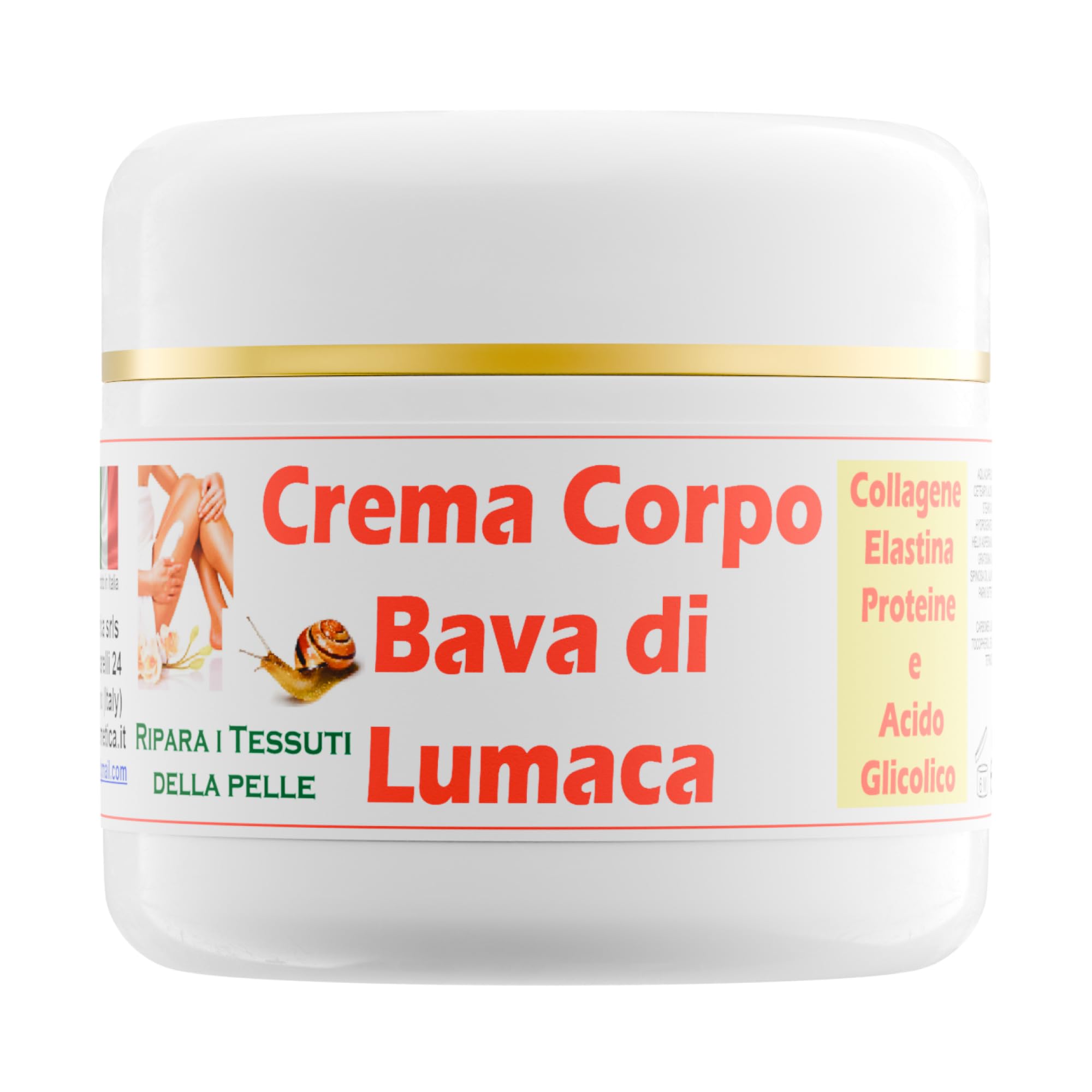 Snail slime is rich in essential vitamins, proteins, and amino acids that promote peripheral vascularization and oxygenate the skin. It regenerates scars, blemishes, burns, and other skin and tissue imperfections. It contains allantoin, a substance that stimulates tissue regeneration, promotes epidermal renewal, and encourages the proliferation of amino acids (which replace dead cells with new ones). Thanks to the presence of peptides and glycolic acid, it promotes the elimination of impurities and microorganisms that cause acne. It is rich in vitamin C, which combats the action of free radicals and maintains youthful and elastic tissues. INGREDIENTS Vitamin CIt is rich in vitamin C, which counteracts the action of free radicals and keeps tissues youthful and elastic. Thanks to the presence of peptides and glycolic acid, it promotes the elimination of impurities and microorganisms that cause acne. It contains allantoin, a substance that stimulates tissue regeneration, promotes epidermal renewal, and encourages the proliferation of keratinocytes (by replacing dead cells with new ones). It regenerates scars, skin blemishes, burns, and other skin and tissue imperfections. Snail slime is rich in vitamins, proteins, and essential amino acids that promote peripheral vascularization and oxygenate the skin.Smcosmetica Crème Corps Bave d'escargot, 200 mlDESCRIPTION DU PRODUIT DESCRIPTION DU PRODUIT La bave d'escargot est riche en vitamines, protéines et acides aminés essentiels qui favorisent la vascularisation périphérique et « oxygénent la peau » régénère des cicatrices, des taches cutanées, des brûlures et d'autres imperfections de la peau et des tissus contient de l'allantoïne, une substance qui stimule la régénération des tissus, favorise le renouvellement épidermique et favorise la prolifération des kérations des kérations. atinocites (substitut En utilisant les cellules mortes avec de nouvelles cellules) grâce à la présence de peptides et d'acide glycolique, il favorise l'élimination des impuretés et des micro-organismes qui provoquent l'acné est riche en vitamine C, qui combat l'action des radicaux libres et maintient les tissus jeunes et élastiques. INGRÉDIENTS Vitamin CIl est riche en vitamine C, qui contraste l'action des radicaux libres et maintient les tissus jeunes et élastiques. Grâce à la présence de peptides et d'acide glycolique, il favorise l'élimination des impuretés et des micro-organismes qui provoquent l'acné. Contient de l'allantoïne, une substance qui stimule la régénération des tissus, favorise le renouvellement épidermique et favorise la prolifération des kératinocytes (en remplaçant les cellules mortes par de nouvelles cellules). Régénère les cicatrices, les taches cutanées, les brûlures et autres imperfections de la peau et des tissus. La bave d'escargot est riche en vitamines, protéines et acides aminés essentiels qui favorisent la vascularisation périphérique et « oxygénent la peau ».