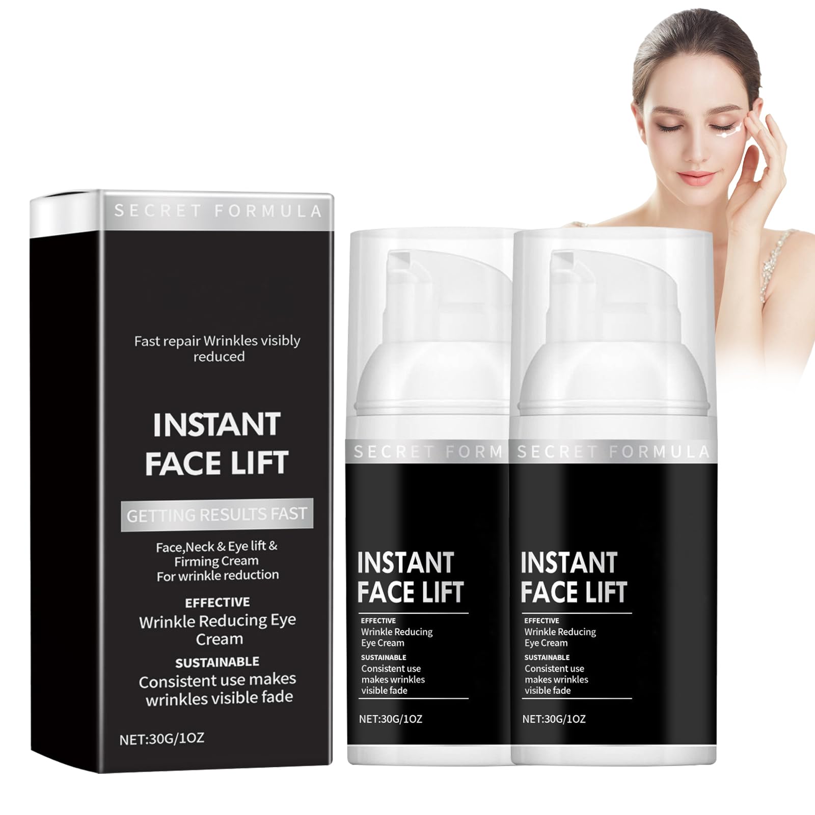 Features: The skin around the eyes is deeply moisturized and becomes smoother and more delicate. Visibly reduce bags under the eyes and make your eyes look radiant. Firms the skin around the eyes and softens fine wrinkles Reduce dark circles for a youthful appearance. Reduces fine lines and pigment spots and brightens the complexion. Specifications: Net content: 30g 2 Shelf life: 3 years Suitable skin type: All skin types Product efficacy: Moisturizing, brightening complexion, firming and softening skin Usage: Clean your hands and face and keep them dry. Take enough eye cream and apply it evenly to the skin around your eyes. Massage gently to promote absorption. This package contains: 2 Eye cream SAFETY WARNING NOApplicable Skin Type : Uses natural plant formula, delicate and moisturizing texture, suitable for all skin types of men and women, including sensitive skin, effectively removes dark circles and bags under the eyes. Easy to Absorb : Light texture, easy to absorb, non-greasy. Feel refreshed after use, suitable for daily use. Regulates the skin's water and oil balance and evens skin tone. Removes Eye Bags : Quickly removes eye bags, dark circles, fine lines and spots, brightens skin tone, effectively improves dark circles and puffiness and makes your eyes look younger. Anti-Wrinkle Eye Cream : Specially designed to smooth fine lines and wrinkles and nourish the eye area, tighten the eye area, smooth crow's feet, instantly tighten and firm the eye area, and shine with youthful charisma. Deeply Moisturizing : Anti-aging eye cream can retain moisture, moisturize and soften the skin around the eyes. Hydrates your eyes all day long and prevents dehydration.2PC Harvey Ross Instant Iift Plus Cernes,Resserrant Instantané des Yeux Firm,Instant Face Lift Cream,Eye Tightening Lifting Serum,Instantly Removes Bags,Dark Circles,Firming Delicate Skin Kenmerken: De huid rond de ogen is diep hydraterend en wordt gladder en kwetsbaarder. Verminder zichtbaar wallen onder de ogen en laat uw ogen er stralend uitzien. Verstevigt de huid rond de ogen en verzacht fijne rimpels Verminder donkere kringen voor een jeugdige uitstraling. Vermindert fijne lijntjes en pigmentvlekken en verheldert de teint. Specificaties: Netto-inhoud: 30 g 2 Houdbaarheid: 3 jaar Geschikt huidtype: Alle huidtypes Werkzaamheid van het product: Hydraterende, verhelderende teint, verstevigende en zachte huid Gebruik: Reinig uw handen en gezicht en houd ze droog. Neem voldoende oogcrème en breng deze gelijkmatig aan op de huid rond uw ogen. Masseer zachtjes om de opname te bevorderen. Dit pakket bevat: 2 Oogcrème VEILIGHEIDSWAARSCHUWING NOToepasselijk huidtype : maakt gebruik van een natuurlijke plantaardige formule, een delicate en hydraterende textuur, geschikt voor alle huidtypes van mannen en vrouwen, inclusief de gevoelige huid, verwijdert effectief donkere kringen en wallen onder de ogen. Gemakkelijk op te nemen : lichte textuur, gemakkelijk op te nemen, niet vettig. Voel je verfrist na gebruik, geschikt voor dagelijks gebruik. Reguleert de water- en oliebalans van de huid en egaliseert de huidtint. Verwijdert oogzakken : Verwijdert snel oogzakken, donkere kringen, fijne lijntjes en vlekken, verheldert de huidskleur, verbetert effectief donkere kringen en wallen en laat uw ogen er jonger uitzien. Anti-rimpel oogcrème : Speciaal ontworpen om fijne lijntjes en rimpels glad te strijken en de huid rond de ogen te voeden, de huid rond de ogen strakker te maken, kraaienpootjes glad te maken, de huid rond de ogen onmiddellijk strakker en steviger te maken en te stralen met jeugdig charisma. Diep hydraterend : Anti-aging oogcrème kan vocht vasthouden, de huid rond de ogen hydrateren en verzachten. Hydrateert uw ogen de hele dag door en voorkomt uitdroging.