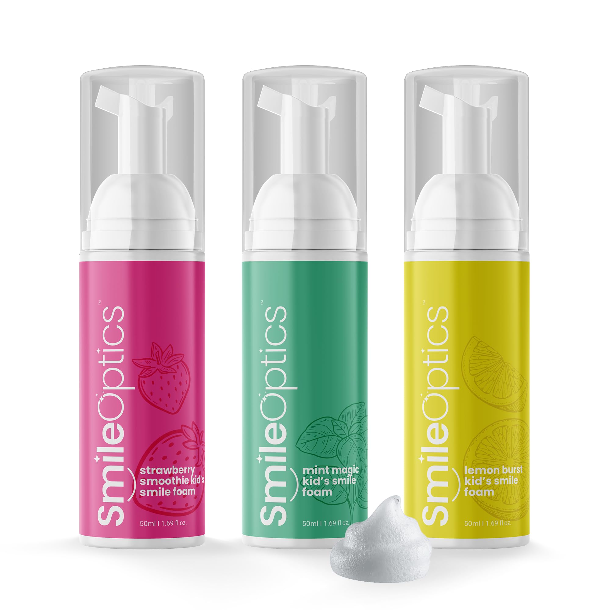 The Smile Optics Fluoride-Free Kids Foam Toothpaste Variety Pack makes daily brushing simple and fun. This 3-count bundle includes three fluoride-free foaming toothpastes in assorted kid-friendly flavors, designed for easy dispensing and everyday oral care routines. Each fluoride-free foam toothpaste offers a gentle brushing experience for kids, helping families maintain consistent oral care habits at home or while traveling. A great option for parents looking for fluoride-free toothpaste choices for children.