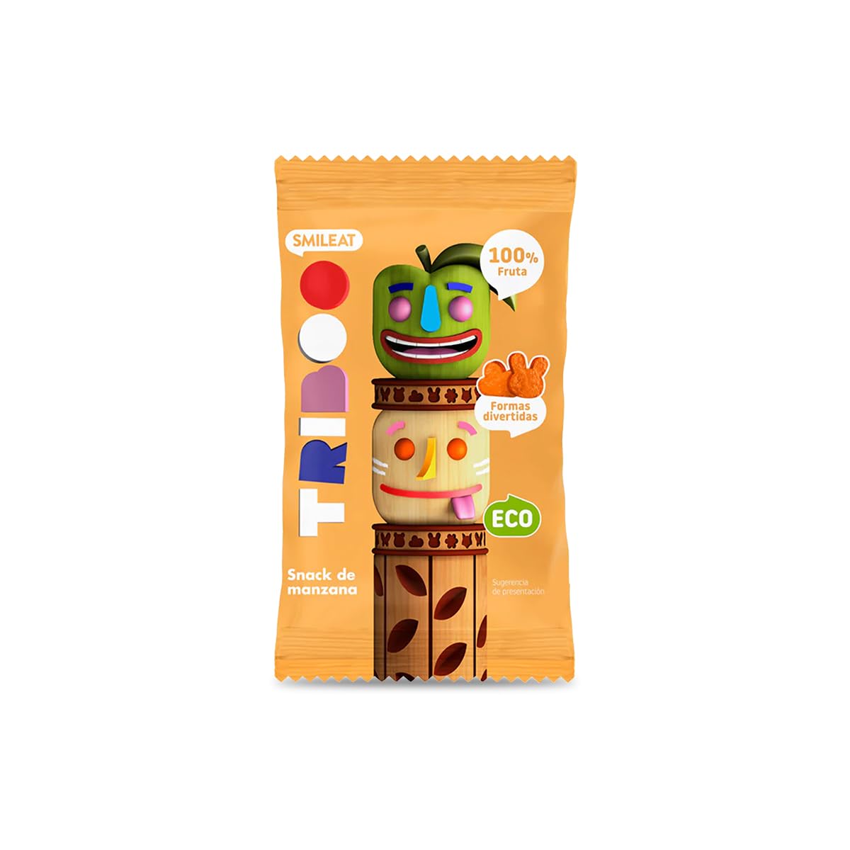 Smileat TRIBOO Snacks. A different and fun way to enjoy all the flavor of fruit. The ideal alternative to candies, made with organic fruit and no added sugar. Their firm texture and fun shapes make every bite a unique experience. Your child will have a great time enjoying them. TRIBOO snacks are perfect to take anywhere. The convenient 25g individual pack fits in a school backpack, making them ideal for the park or for enjoying on a day trip. Easy to handle and eat, they can also be given in small pieces. With a high fiber content, this snack retains all the properties of the fruit. At Smileat, we are committed to responsible production. We make our snacks with organic ingredients, promoting a more transparent and sustainable food system. TRIBOO is more than just a snack it's the practical and fun choice when you don't have fruit on hand and want to offer your child something different. INGREDIENTS Organic apple puree (100 ). From organic farming.