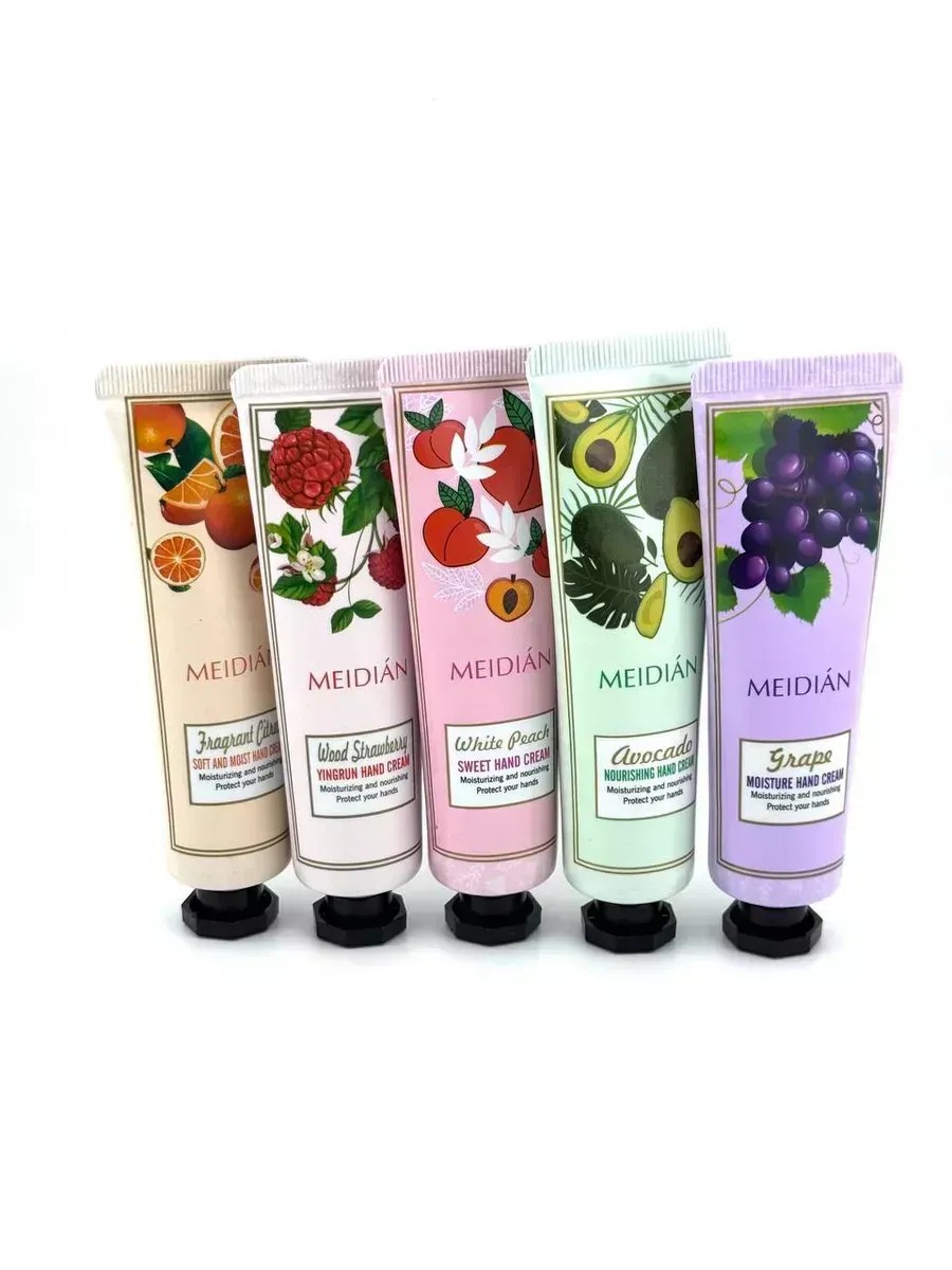 Фруктовые кремы для рук с сладкими ароматами фруктов: винограда, авокадо, персика, малины, апельсина, чтоб ваши ручки всегда пахли вкусно и выглядели ухоженно. В наборе 5 штук по 30гр. Берите всегда с собой. Подойдет для всех, и детям и женщинам, девушкам, подросткам. Их роскошная и высокопитательная формула обеспечивает дополнительное увлажнение кожи рук. Благодаря расслабляющему аромату кожа станет мягкой, эластичной и расслабленной. Зимой, когда кожа испытывает особую нагрузку от холода и перепадов температур, наши руки нуждаются в особенном уходе. Благодаря своей уникальной формуле, средство обеспечивает интенсивное увлажнение и питание, при этом предотвращая шелушение и смягчая кожу. Кроме того, он эффективно противостоит старению кожи и укрепляет ногти, делая их более крепкими и здоровыми. Регулярное применение нашего продукта поможет вам сохранить красоту и молодость рук на долгое время. А благодаря маленькой упаковке его удобно брать с собой , положив в карман куртки, пальто, или в сумочку, рюкзак, легко применить как в дороге, так и в офисе, и в школе, и после тренировок. Оно всегда будет под рукой.