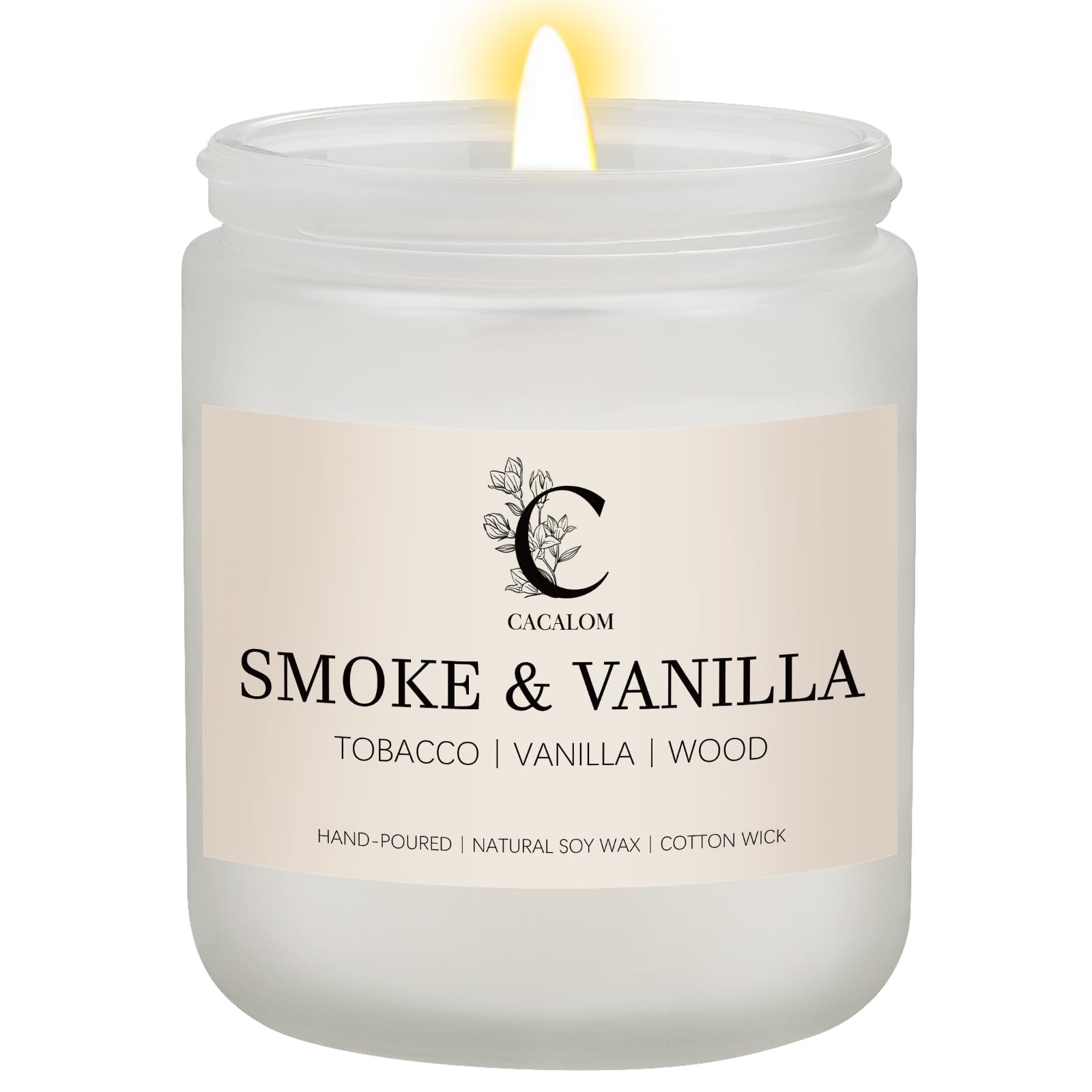 Smoke & Vanilla Scented Candles Long Lasting Burn Candles for Home Scented Soy Wax Stress Relief Jar Candles 7 oz