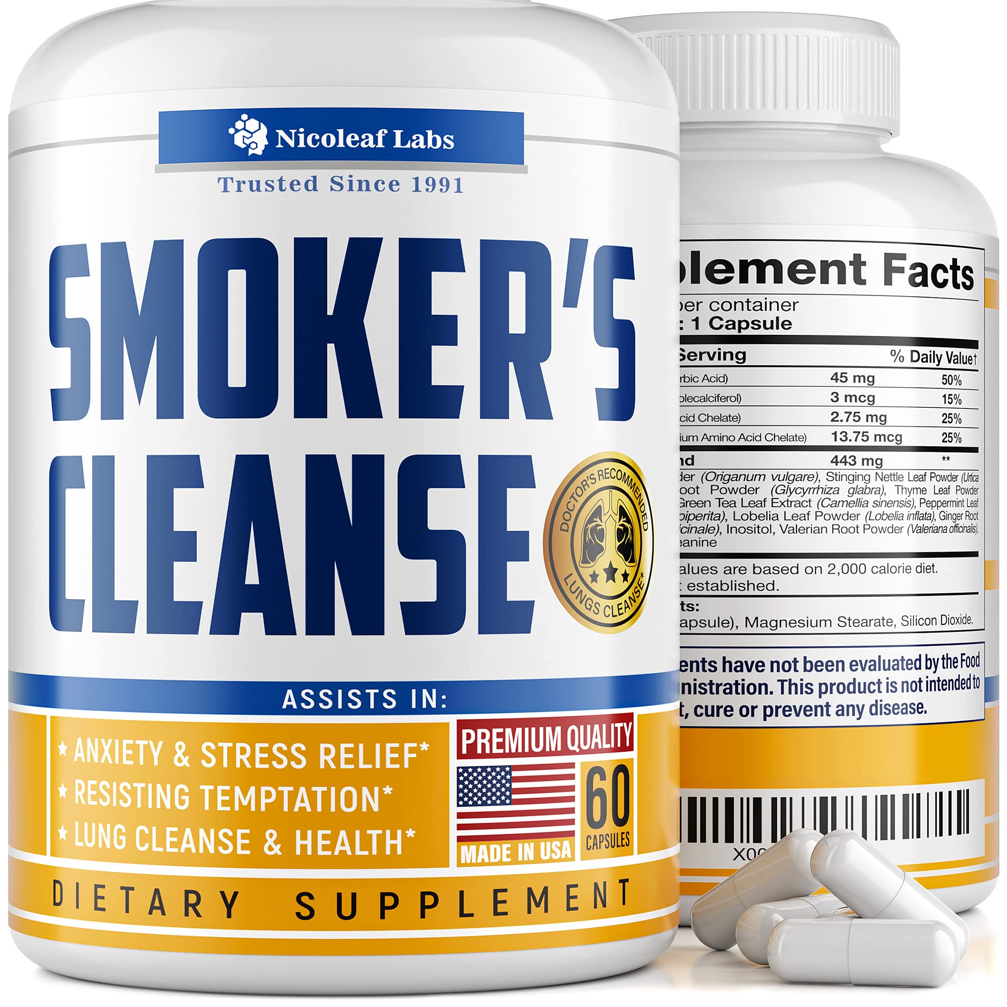 American Quality - Nicoleaf is proudly produced in the United States in a GMP-certified facility. This means we are committed to using high-quality ingredients, like Licorice and Mullein, to clear toxins in your airways & provide respiratory support. With Nicoleaf, you can feel confident about what you’re putting in your body. Your new healthy lifestyle awaits!. Proven Results - Discover your strength and join over 10,000 Nicoleaf customers who have found success with our detox system! We want to help you experience the benefits of being a quitter. We’ve earned the trust of thousands of ex-smokers, who chose Nicoleaf to help them kick the habit for good, and we can’t wait to hear your success story next! Do not get discouraged from slip ups - we will help you succeed!. Stay Motivated - Make quit a big day! Making the decision to quit smoking is a positive step on your journey to optimal health and wellness. Our revolutionary formula uses the power of nature to help you succeed by reducing withdrawal symptoms and supporting your lifestyle change so you slip up less often and have the resources required to keep going strong. Keep log to track you non-smoking progress!. Quit Smoking - Enough wrinkles, yellow fingers and smoke smells. Do not smoke - and consistently daily use Nicoleaf Smoker's Cleanse. Take up to three capsules per day with full glass of water. You will overcome it. Nicoleaf allows you to fight habit head on when you need it most. There is no place for "Just one more please". Detox your lungs and cleanse habit out!. Breathe Freely - Nicoleaf Labs Smoker’s Cleanse is an all-natural supplement designed to help ease the process of quitting cigarette smoke while detoxifying your lungs. Enriched with minerals, enzymes, and herbs, our lung support capsules help dissolve phlegm and clear mucus congestion, naturally reducing breathing difficulties. Invest in your health - it will pay off.