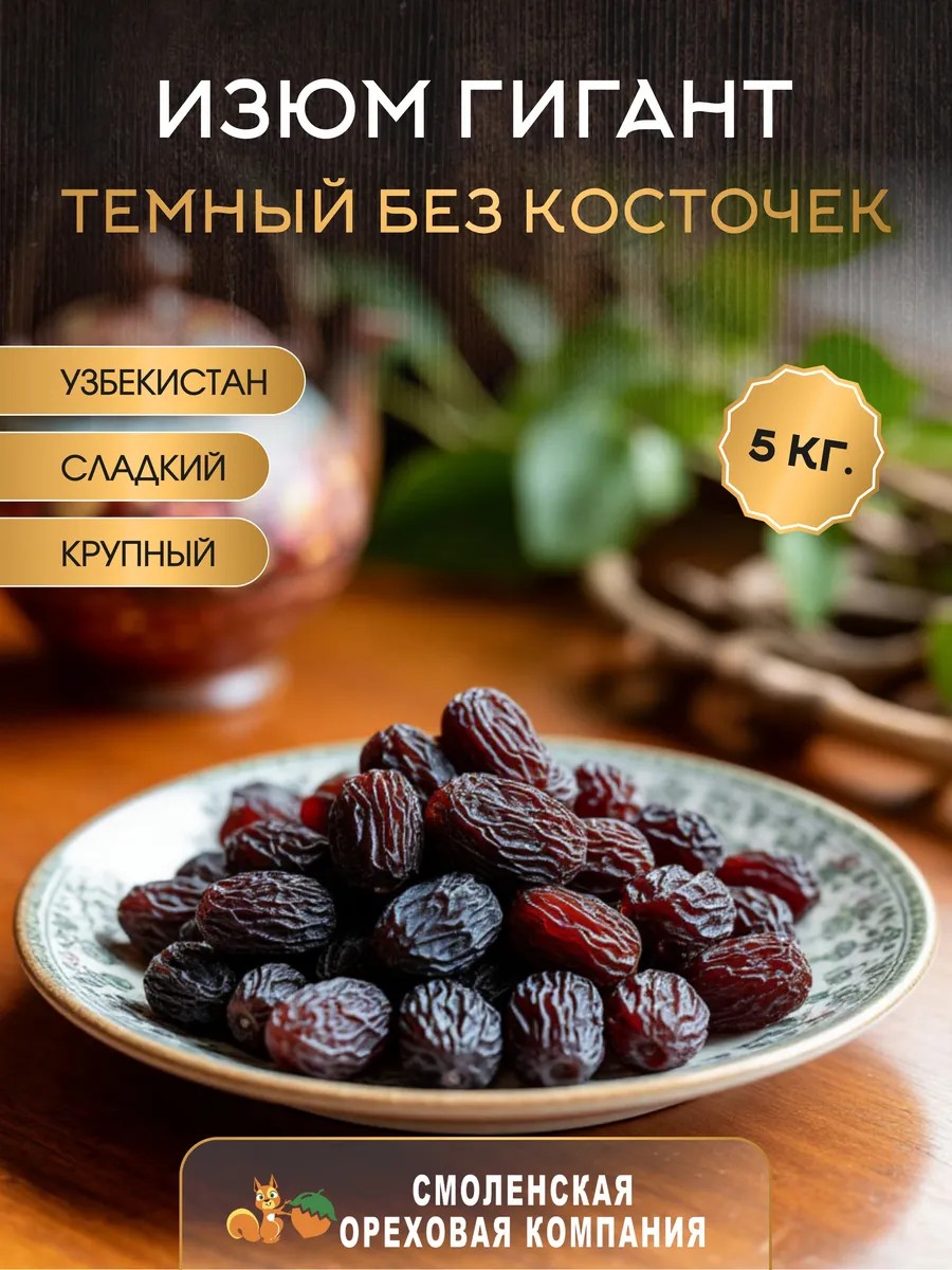 Изюм гигант – это полезный и вкусный сухофрукт, который станет отличным дополнением к вашему рациону. Этот изюм без косточек крупный известный своим сладким вкусом и мягкой текстурой, что делает их идеальными для перекусов и добавления в различные блюда. Продукты без сахара идеально подходят для тех, кто следит за своим питанием. Этот вид изюма представляет собой продукт питания, который не содержат ненужных калорий и искусственных добавок. Он получается из отборного винограда без косточек, что делает его удобным для употребления в любое время. Такой вариант прекрасно сочетается с другими продуктами. Вы можете использовать его как ингредиент для приготовления сладких десертов или ярких салатов. Изюм темный станет не только полезным дополнением к вашему рациону, но и настоящей находкой для любителей здорового питания. Сухофрукты могут стать отличной альтернативой конфетам и другим сладостям, ведь среди продуктов питания такой выбор будет наиболее оптимальным. Вкусняшки на основе природных компонентов всегда остаются актуальными и востребованными среди приверженцев здорового образа жизни. Добавьте этот замечательный продукт в свой повседневный рацион и ощутите все преимущества натурального питания!
