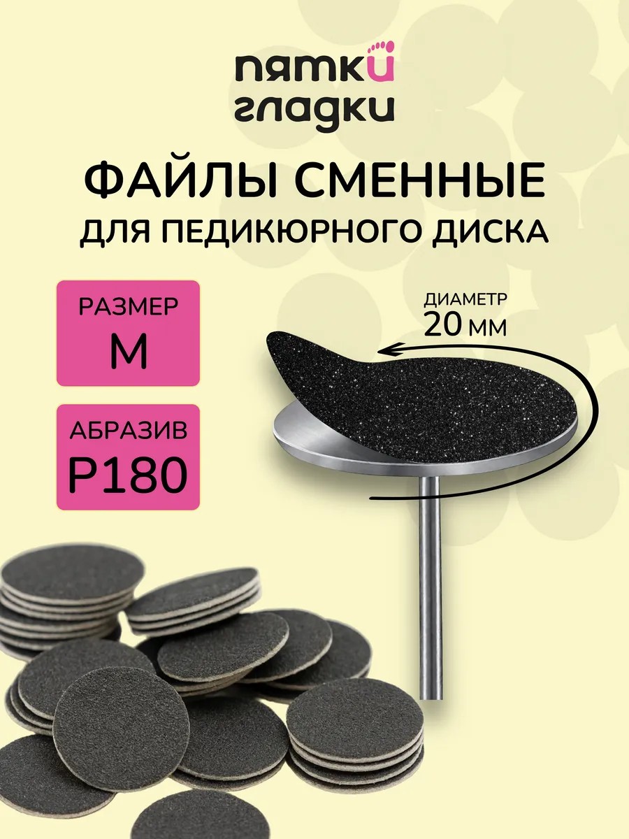 Высококачественные сменные файлы на диск для педикюра M 20 мм 180 грит 50 шт Пятки Гладки. Сменные файлы для педикюрного диска идеальны для профессионального ухода за ногами и ногтями. Файлы cмарт-диск с премиальным абразивом гарантирует качественную обработку, обеспечивая высокую скорость работы без крошения файлов. Средство предназначено для эффективной шлифовки пяток и ногтей, упрощая работу мастера. Файлы на диск