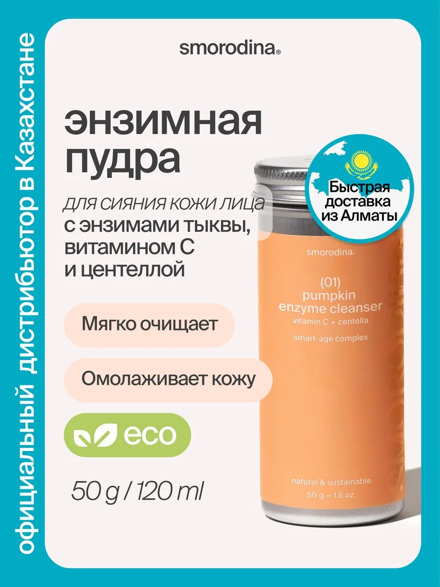 | Комплектация | Энзимная пудра тыквенная с витамином С и экстрактом центеллы, коробка крафт |