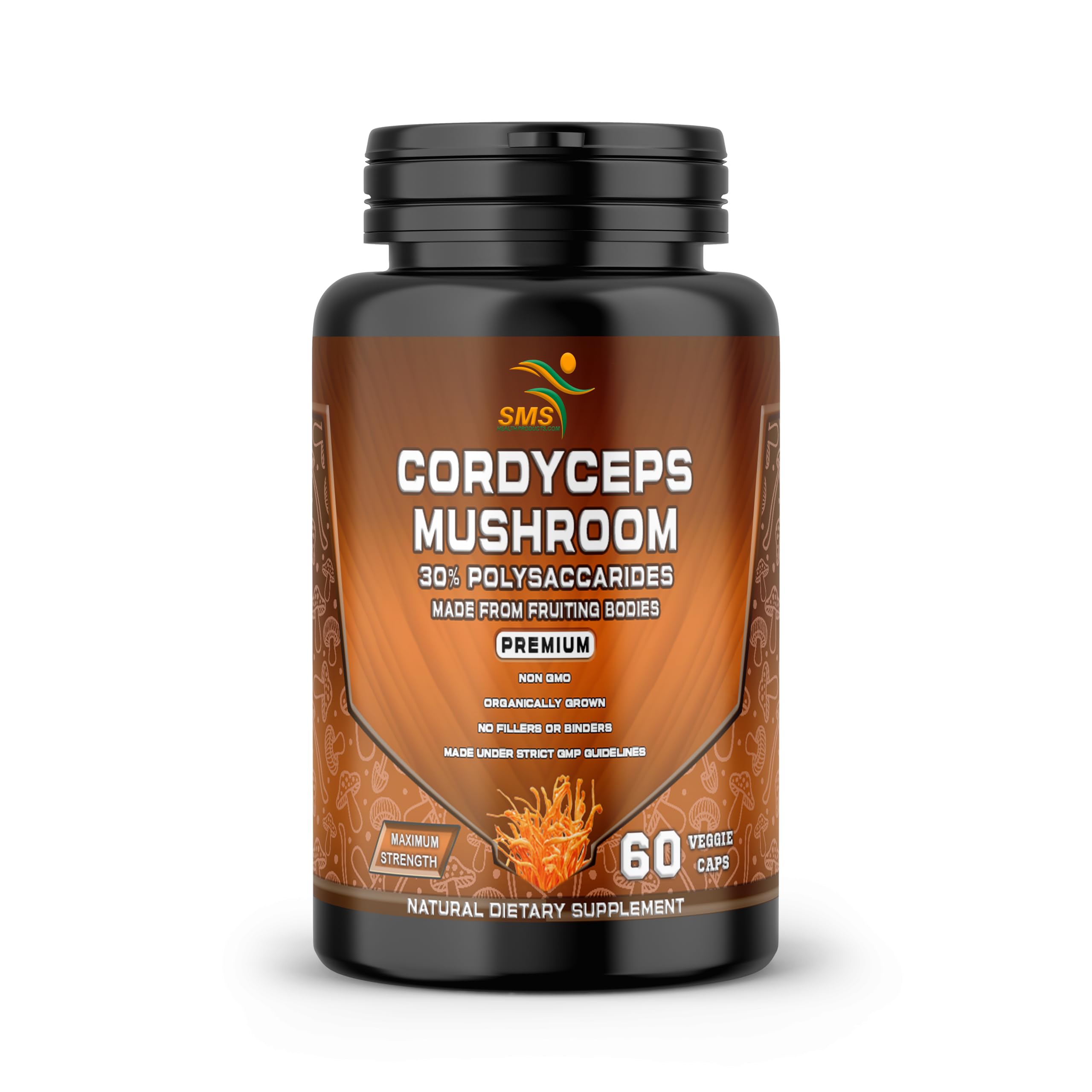 SMSHEALTHPRODUCTS.com Cordyceps Mushroom Pills - Dietary Supplement Extract with 30% Polysaccarides for Energy & Immune Support Vegan Supplement Non-GMO 60 Capsules