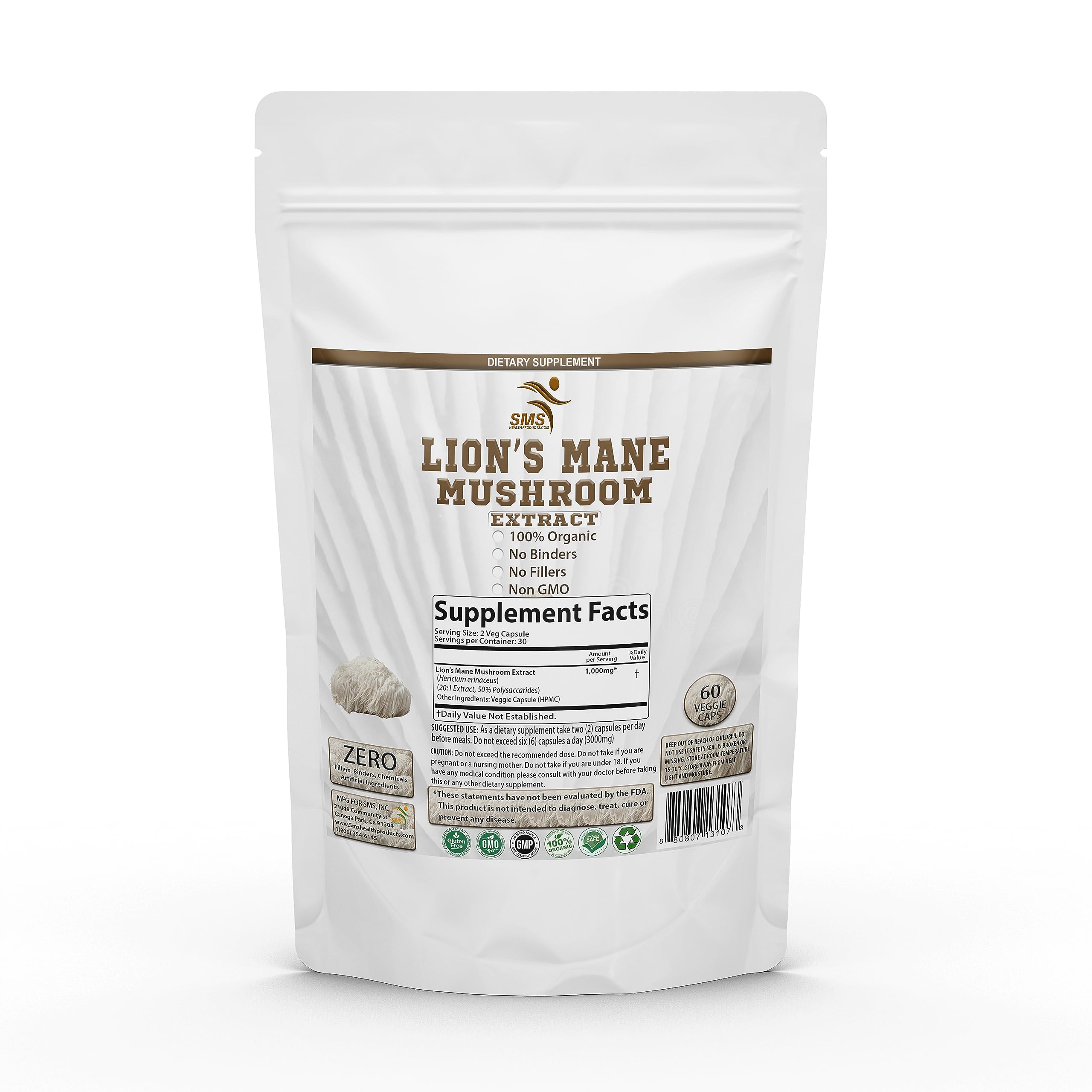 SMSHEALTHPRODUCTS.com Lion's Mane Mushroom Cognition Capsules (60 Capsules) Lions Mane Mushroom Powder Extract Capsules | for Brain Support and Immune Health
