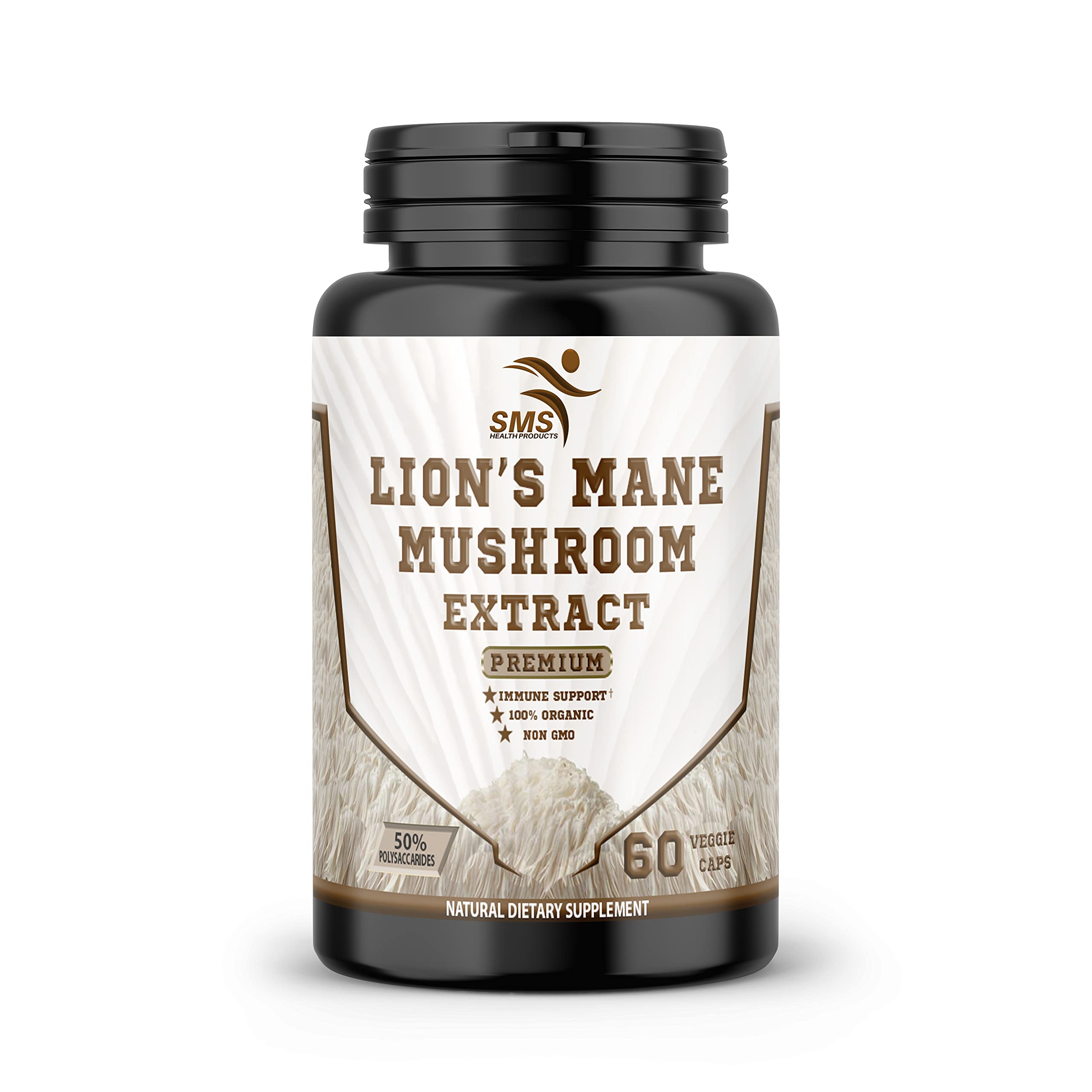 SMSHEALTHPRODUCTS.com Lion's Mane Pills Mushroom Cognition Capsules (60 Veggie Capsules) 30% Polysaccharides- Lions Mane Extract Capsules | Brain Supplement for Brain Health and Memory Support