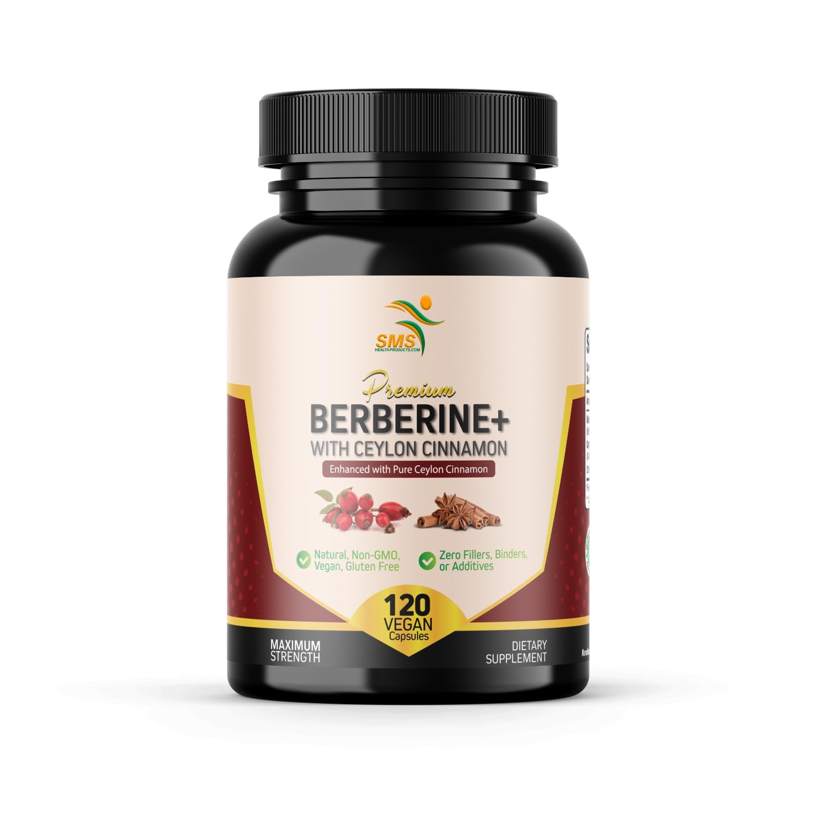 SMSHEALTHPRODUCTS.com Premium Berberine HCL 1200mg True Ceylon Cinnamon 120 Capsules Berberine HCI Root Supplement for Immune Support and Overall Wellness