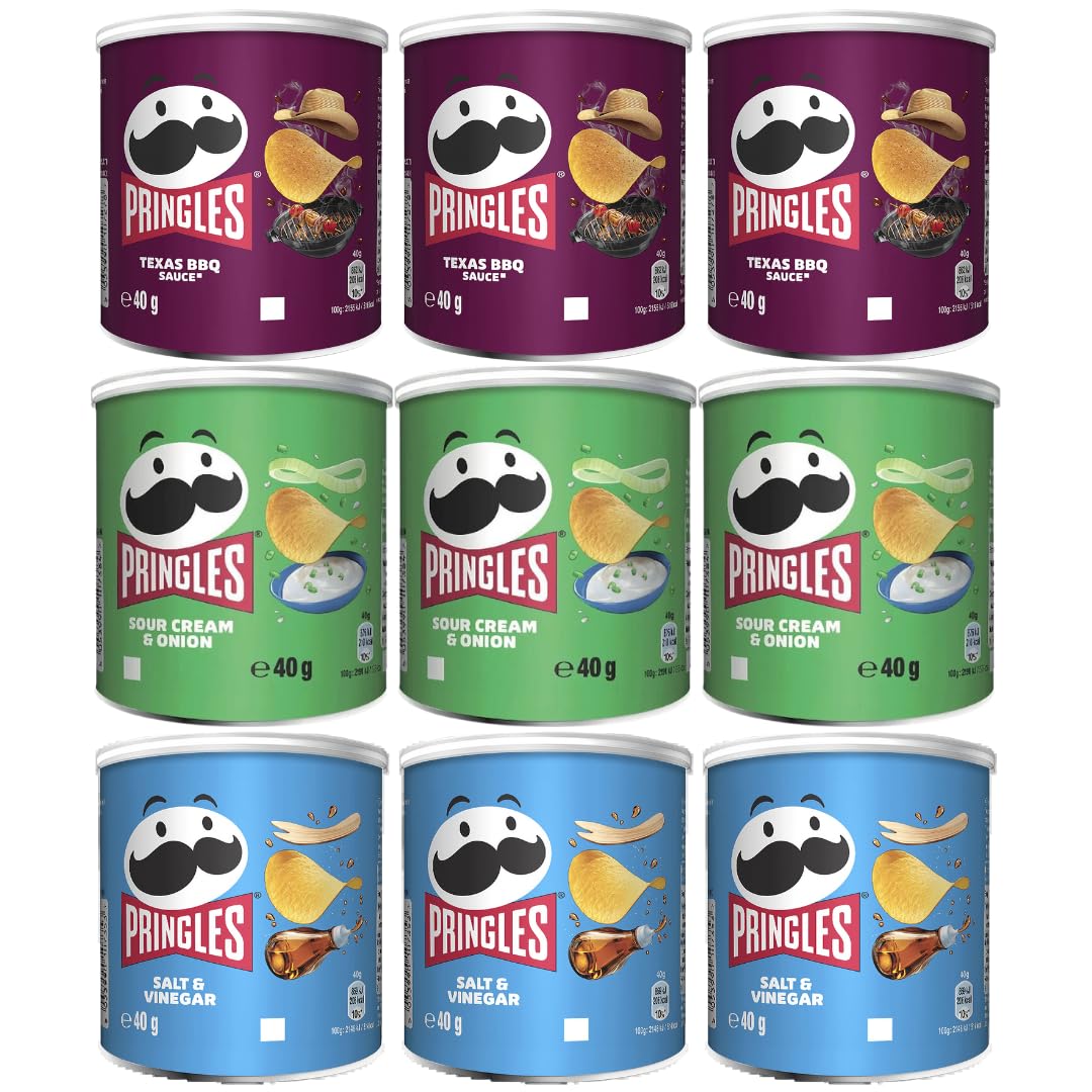 Snack Tub Bundle with Pringles Texas BBQ Tub 40g x3 Sour Cream & Onion Tub 40g x3 & Salt & Vinegar Tub 40g x3 (9 Pack)