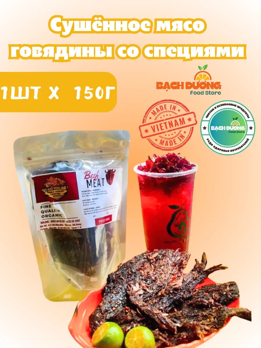 Отличное дополнение к столу. Уместен как перекус на работе или в длительном путешествии, в школе и на студенческих занятиях. Не употребляете рыбу? Есть отличная альтернатива - натуральный мясной продукт, избавленный в процессе своего приготовления от влаги. Содержит большое количество питательных веществ и лишено химических вкусовых добавок. Технология сушки сохраняет в готовом продукте все полезные вещества, которые содержатся в свежем мясе: белки, жиры, витамины (в первую очередь А, В и РР), микроэлементы (магний, железо, фосфор, кальций, цинк), аминокислоты. Идеально подходит в качестве закуски-снека и для вьетнамских блюд (салатов, блинчиков нэм и др.) Условия хранения: Хранить в прохладном, темном и сухом месте. Избегать попадания прямых солнечных лучей.