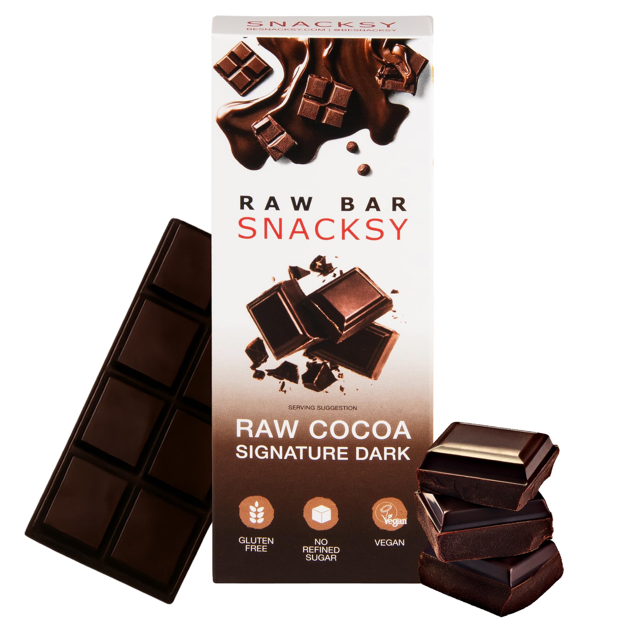 Snacksy Chocolat végétalien – Barre crue foncée Signature (1 boîte de 40 g) | Sans gluten, sans produits laitiers, sans sucre raffiné et casher avec antioxydants | Friandise ou cadeau de luxe Signature Dark 40g (1 Bar)