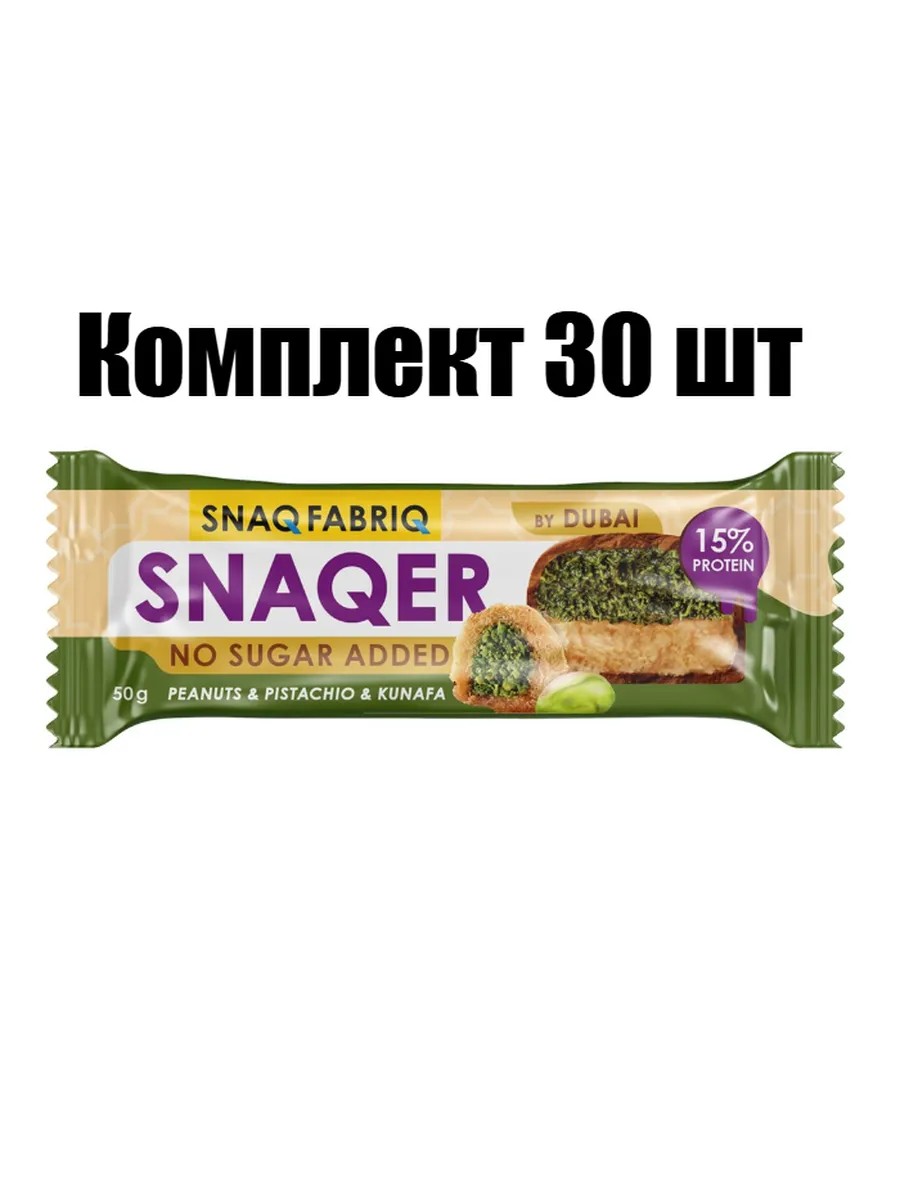 Snaq Fabriq Батончик глазированный с арахисом фисташкой и хрустящим тестом, 50 г, 30 шт. Snaqer by Dubai - новинка, вдохновленная всемирно известным Дубайским шоколадом. Это настоящая энергетическая бомба из хрустящего теста катаифи, фисташковой пасты и нежнейшего молочного шоколада без сахара. Это гармоничное сочетание хрустящих орехов, тягучей карамели и нежного молочного шоколада, созданное для тех, кто заботится о здоровье и стремится к правильному питанию. Концентрат сывороточного протеина в составе делает продукт ценным источником белка, а клетчатка способствует здоровому пищеварению. Отсутствие добавленного сахара и минимальное количество углеводов позволяют наслаждаться вкусом без вреда для фигуры. Батончик подходит спортсменам и всем, кто ищет полезную альтернативу традиционным сладостям. Он станет отличным перекусом в течение дня, утолит голод и подарит заряд энергии. Продукт подходит как взрослым, так и детям, его удобно брать с собой в дорогу или в спортзал.
