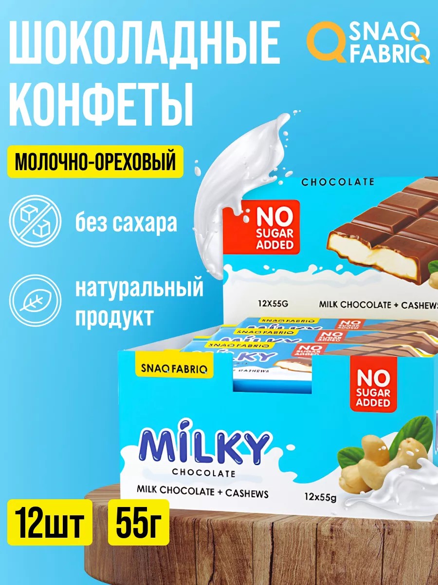 Снэк Фабрик, Милки молочная шоколадка, Snaq Fabriq Milky Chocolate, 10 шт по 55 г, Молочная с кешью. Никто не может устоять перед ароматными батончиками от Snaq Fabriq. Эти невероятно вкусные сладости станут идеальным подарком для всех любителей шоколада. Благодаря натуральным ингредиентам, эти конфеты не содержат сахара и глютена, что делает их подходящими для всех, кто заботится о своем здоровье и питании. Великолепно сочетая в себе молочную начинку с кешью, она порадует своего владельца нежным и роскошным вкусом. Маленькая коробка с этими шоколадками идеально подойдет в качестве подарка к любому празднику. Это прекрасный способ порадовать своих близких с любовью и вниманием. К тому же, эти батончики можно без опасений употреблять в питании, если вы следите за своим ПП и хотите выбирать только полезные продукты. Благодаря использованию низкокалорийных подсластителей и клетчатки, мы создали вкусняшки, которые порадуют вас нежным, утонченным вкусом, не нанося вреда вашему здоровью. Milky Chocolate представлены в нескольких вариациях, чтобы удовлетворить самые изысканные вкусы. Вы можете насладиться батончиком со сливочной начинкой, шоколадной с фундуком или молочная с кешью. Каждая шоколадка из этого набора упакована в стильную упаковку, что делает их еще более привлекательными для взрослых и детей. Благодаря низкой калорийности и отсутствию глютена, они также станут отличным выбором для людей, следящих за своей фигурой или придерживающихся диетического питания. Так что, не стесняйтесь добавить их в свой рацион даже во время похудения или в качестве пп перекуса в течение дня. Получив этот набор молочных десертов, вы будете наслаждаться каждым кусочком, ощущая нежный вкус и аромат. Они прекрасно сочетаются с чаем, кофе или могут быть использованы в качестве fitness десерта. Кроме того, эти сладкие необычные конфетки не только вкусные, но и полезные. Они содержат белок и полностью лишены сахара, что делает их идеальным выбором для правильного здорового питания ЗОЖ. Порадуйте свою маму, учителя или друзей в школе и они обязательно оценят ваш выбор. Не упустите возможность попробовать эти натуральные и безглютеновые канфеты. Разнообразие вкусов и качество продукции Snaq Fabriq позволяют нам гарантировать ваше полное удовлетворение. Такой презент выручит вас на любой праздник: день матери, 23 февраля, 8 Марта, станет прекрасным дополнением к сюрпризу на день рождения или на 14 февраля (День святого Валентина), а также порадует ваших коллег даже без повода. Безумно вкусные подарки для вашей второй половинки (девушке или парню)! Закажите этот набор сейчас и сделайте свой новый год идеальным с этими нежными и вкусными молочными кофетами. Наши товары великолепно дополнят любой подарочный набор, сладкий бокс и спортпит.