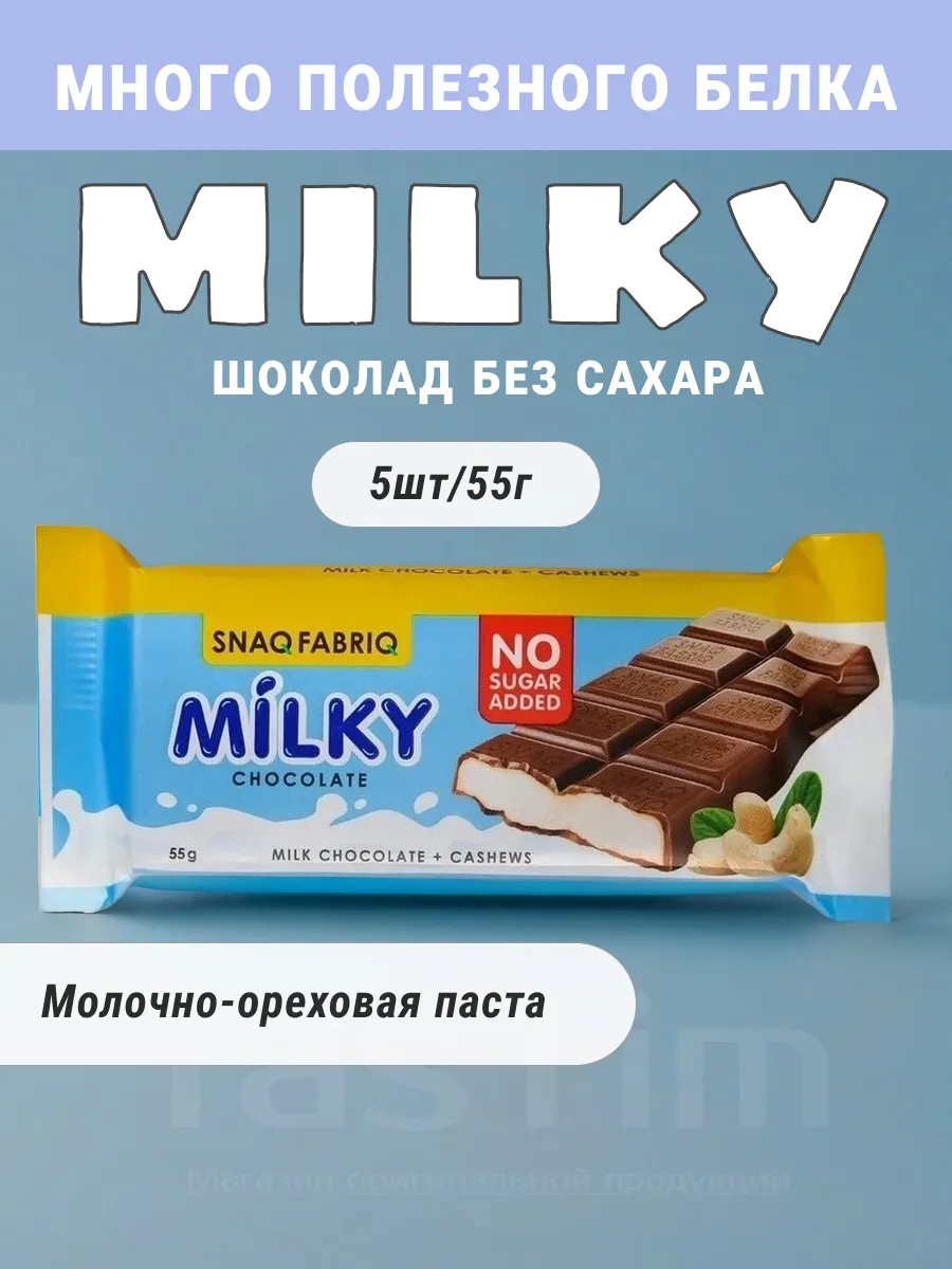 Разрешите себе немного нежности с Milky от Snaqfabriq! Этот молочный шоколад без сахара – прекрасная возможность побаловать себя любимым вкусом, не нарушая принципов ЗОЖ. Идеальный батончик для тех, кто ценит моменты наслаждения с чашечкой кофе и вкусным перекусом!