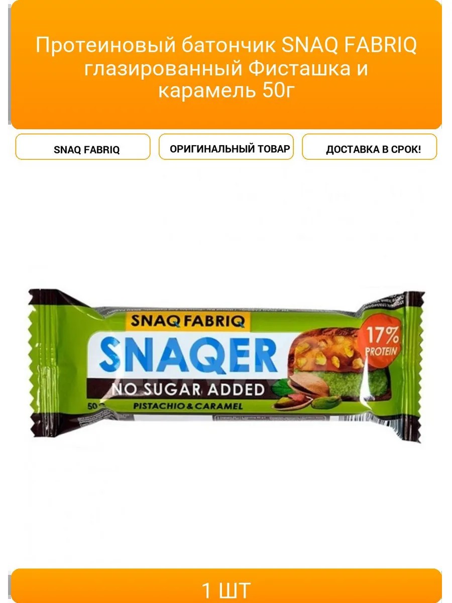 | Комплектация | Протеиновый батончик SNAQ FABRIQ глазированный Фисташка и карамель 50г |