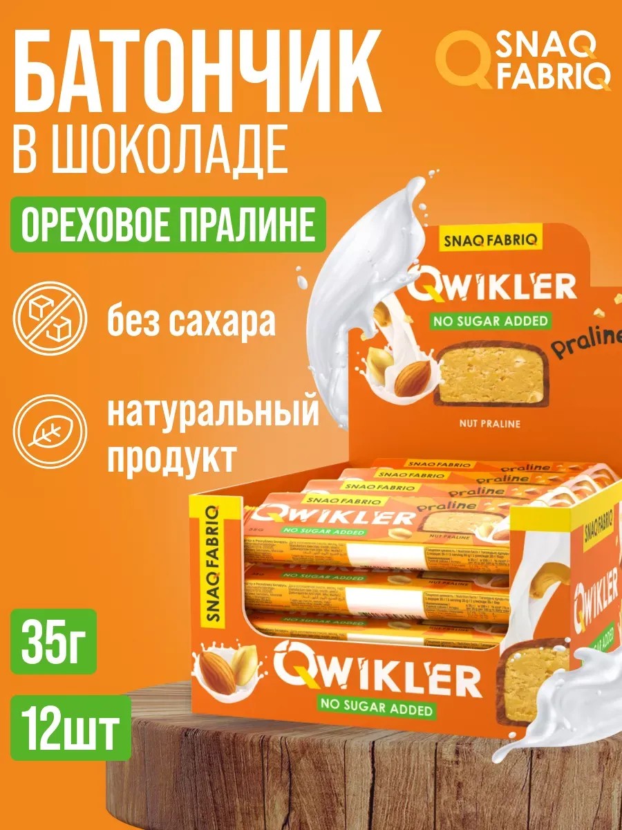 12 Батончиков. Добро пожаловать в мир чистого наслаждения! Представляем вам шоколадный батончик от SNAQ FABRIQ - Qwikler Пралине - нежный и роскошный десерт, который сделает ваше питание еще более вкусным и здоровым.