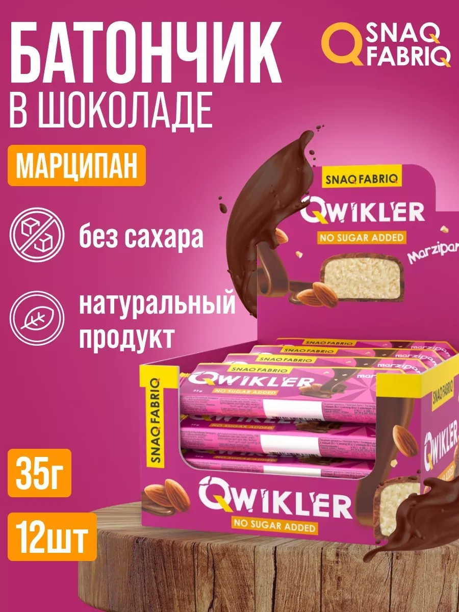 Qwikler Батончики без сахара в шоколаде "Мaрципан", 12шт