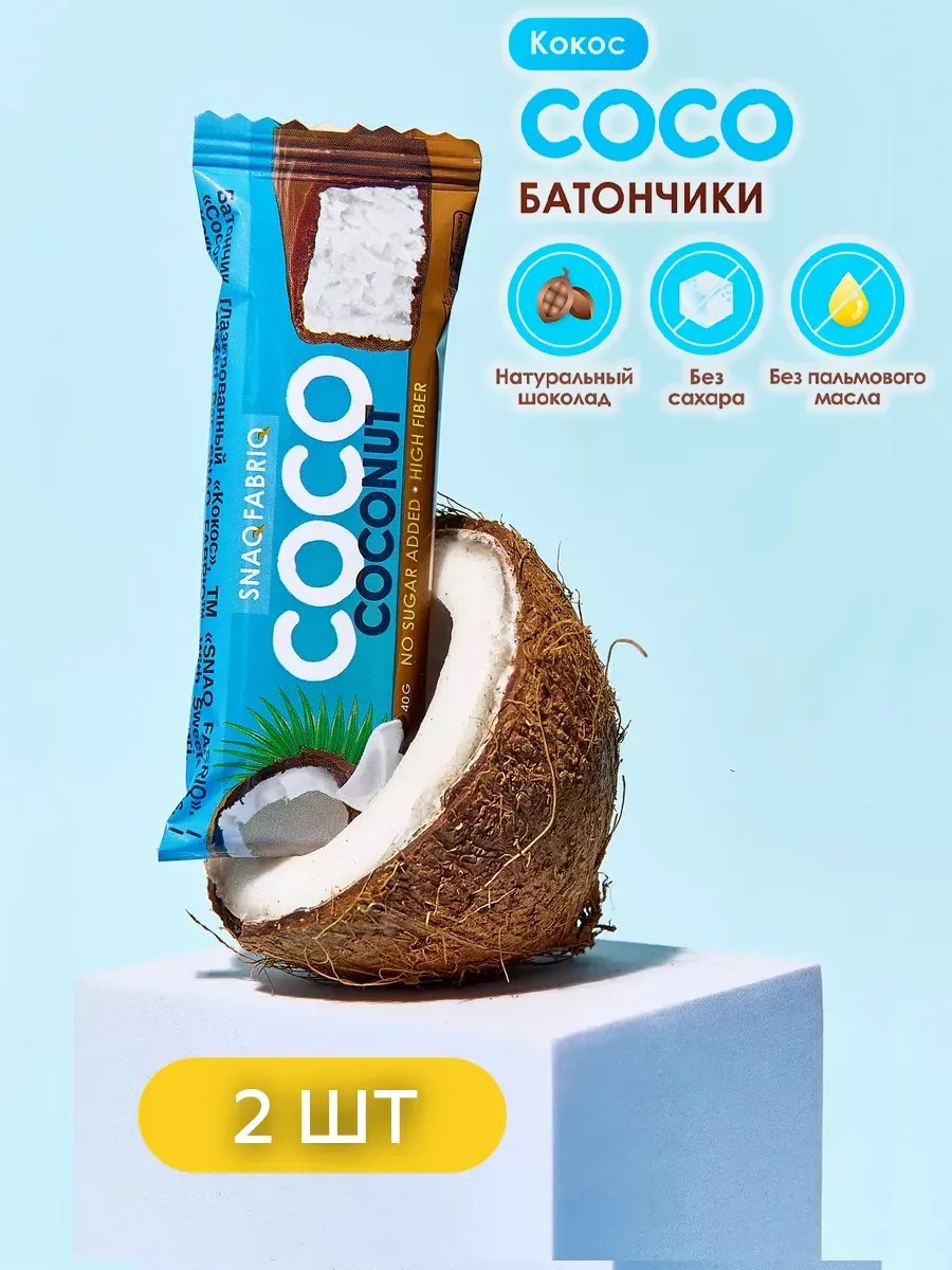 Кокосовый батончик COCO от SNAQ FABRIQ - это не просто правильные сладости, а настоящее полезное ПП удовольствие без вреда для фигуры! Десерт с начинкой из нежной мякоти кокоса, покрытый ароматным натуральным молочным шоколадом без сахара и пальмового масла. Этот диетический продукт можно использовать как здоровый перекус, ведь в нем так много клетчатки и минимум углеводов.