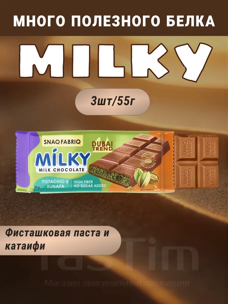 SNAQ FABRIQ Плиточный шоколад для перекуса Milky Дубай 3шт х 55г