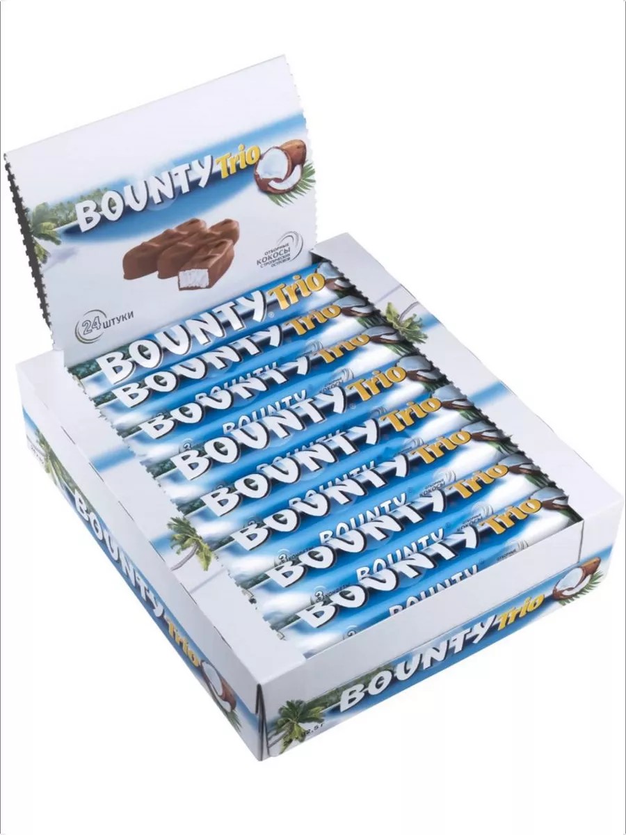 Шоколадные батончики Bounty Trio 24 шт по 82,5 г