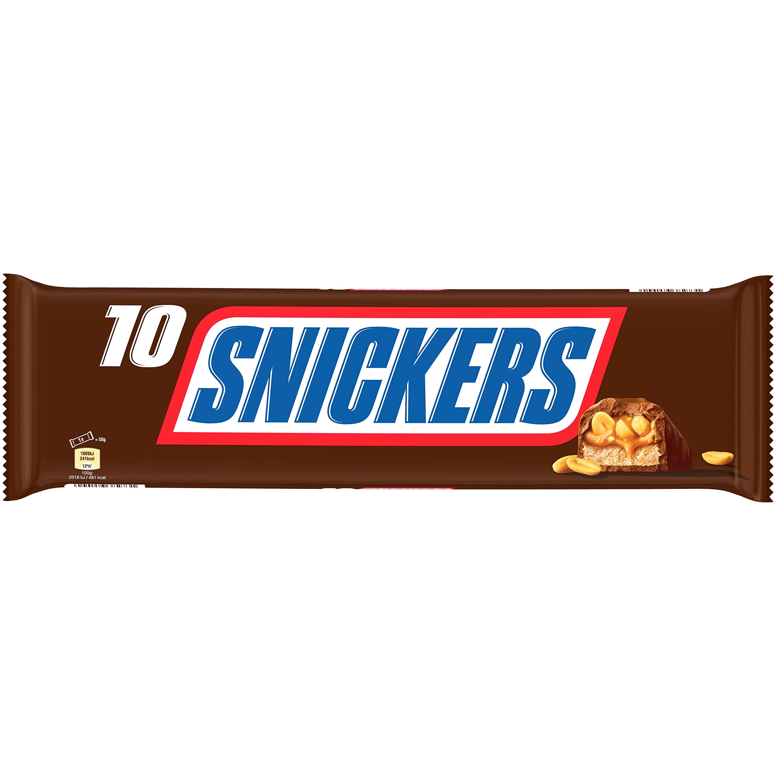 Pack of 4 bags each containing 10 Snickers chocolate bars. Snickers is a tasty peanut and caramel bar, all coated in crunchy chocolate, for those who need a good dose of satisfaction. INGREDIENTS Sugar, Glucose Syrup, Peanuts, Skimmed Milk Powder, Cocoa Butter, Cocoa Mass, Lactose, Sunflower Oil, Concentrated Butter (Milk), Whey Powder, Palm Fat, Salt, Emulsifier (Soya Lecithin), EGG White Powder, Coconut Oil, Hydrolyzed Milk Protein, Natural Vanilla Extract. DIRECTIONS FOR USE Store between 13 and 22 SAFETY WARNING Consume promptly after opening. Each bar is individually wrapped. Feeling peckish? Snickers is here for you! Snickers is a tasty peanut and caramel bar, all coated in crunchy chocolate, for those who need a good dose of satisfaction. Created in 1930, Snickers is now the world's number one chocolate bar. Pack of 4 bags, each containing 10 Snickers chocolate bars. Lot de 4 sachets contenant chacun 10 barres chocolatées Snickers. Snickers est une barre savoureuse aux cacahuètes et caramel, le tout enrobé de chocolat craquant, pour ceux qui ont besoin d'une bonne dose de satisfaction. INGRÉDIENTS Sucre, sirop de glucose, Cacahuètes, Lait écrémé en poudre, beurre de cacao, pâte de cacao, Lactose, huile de tournesol, beurre concentré (Lait), petit-Lait en poudre, matière grasse de palme, sel, émulsifiant (lécithine de Soja), blanc d'OEUF en poudre, huile de noix de coco, protéine de Lait hydrolysée, extrait naturel de vanille. MODE D'EMPLOI Conserver entre 13 et 22 AVERTISSEMENT DE SÛRETÉ Consommer rapidement après ouverture. Chaque barre est emballée individuellement. Une petite faim ? Snickers est là pour toi !. Snickers est une barre savoureuse aux cacahuètes et caramel, le tout enrobé de chocolat craquant, pour ceux qui ont besoin d'une bonne dose de satisfaction. Créée en 1930, Snickers est aujourd'hui la 1ère barre chocolatée au monde. Lot de 4 sachets contenant chacun 10 barres chocolatées Snickers.