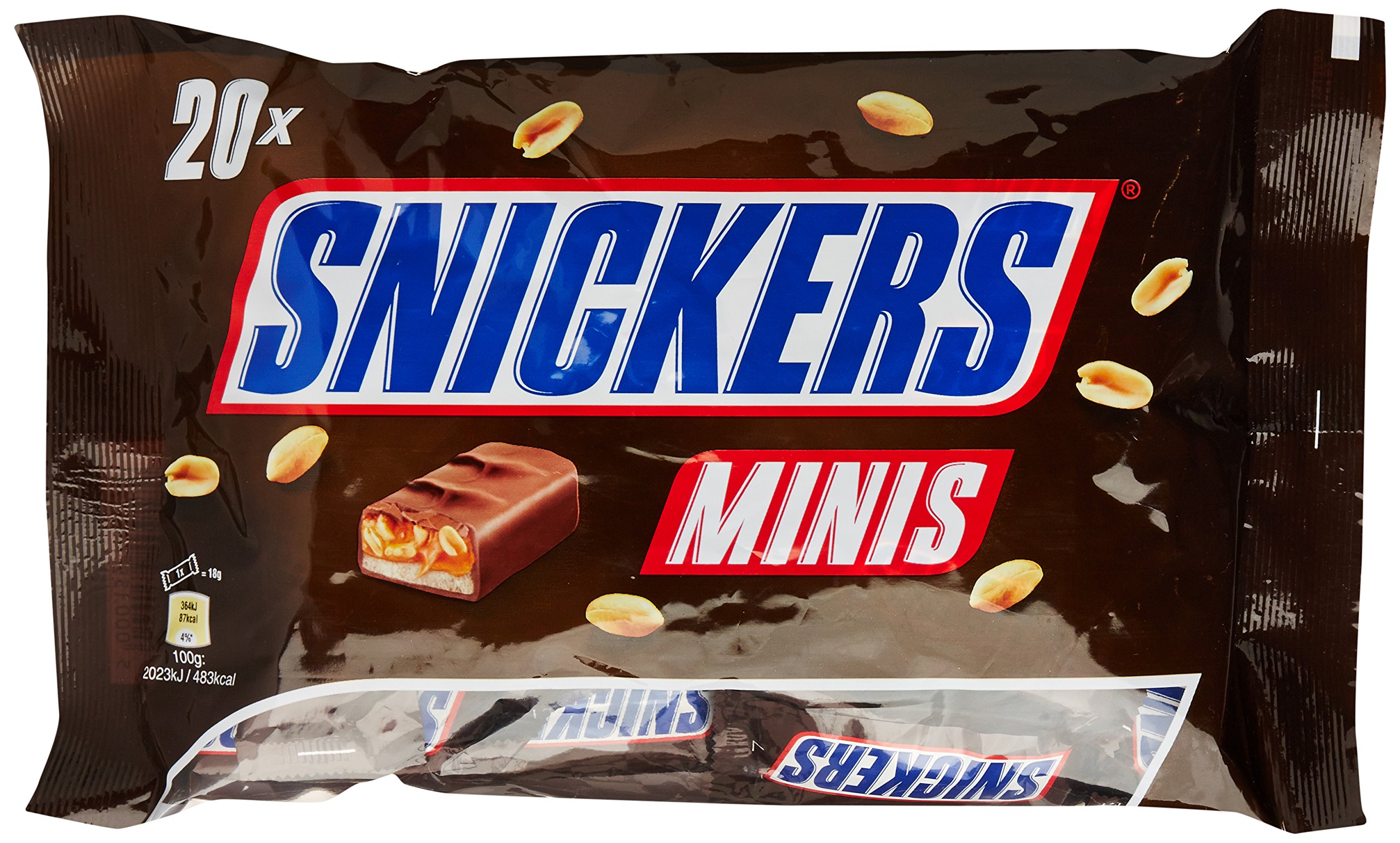 : Milk chocolate filled with confectionery (14 ) and caramel (27 ), with roasted peanuts (24 ). Milk chocolate filled with confectionery (16 ) and caramel (27 ), with roasted peanuts (22 ). For your health, avoid eating too much fat, sugar, and salt. MARS CHOCOLAT France 3 rue Sandlach 67501 HAGUENAU cedex Ingredients: Sugar, glucose syrup, peanuts, skimmed milk powder, cocoa butter, cocoa mass, sunflower oil, lactose, milk fat, whey powder, palm fat, salt, emulsifier (soy lecithin), egg white powder, milk protein, natural vanilla extract. (May contain: hazelnut). Allergens: peanuts, milk, lactose, soy, egg. (May contain: hazelnut). P.when('A').execute(function(A) { A.on('a:expander:toggle_description:toggle:collapse', function(data) { window.scroll(0, data.expander. expander[0].offsetTop-100) }) }) Instructions for use: store in a cool, dry place. See moreThe 400g pack.Description du produit Chocolat au lait fourré de confiserie (14 ) et de caramel (27 ), avec des cacahuètes grillées (24 ). Chocolat au lait fourré de confiserie (16 ) et de caramel (27 ), avec des cacahuètes grillées (22 ) Pour votre santé, évitez de manger trop gras, trop sucré, trop salé. MARS CHOCOLAT France 3 rue sandlach 67501 HAGUENAU cedex Ingrédients Sucre, sirop de glucose, cacahuètes, lait écrémé en poudre, beurre de cacao, pâte de cacao, huile de tournesol, lactose, graisse de lait, petit- lait en poudre, graisse de palme, sel, émulsifiant (lécithine de soja), blanc d'oeuf en poudre, protéine de lait, extrait naturel de vanille. (Peut contenir : noisette). Allergènes : cacahuètes, lait, lactose, soja, œuf. (Peut contenir : noisette). P.when('A').execute(function(A) { A.on('a:expander:toggle_description:toggle:collapse', function(data) { window.scroll(0, data.expander. expander[0].offsetTop-100) }) }) Mode d'emploi Conserver dans un endroit frais et sec. Voir plusLe paquet de 400g.Snickers Sachet de 20 mini-barres 400 g