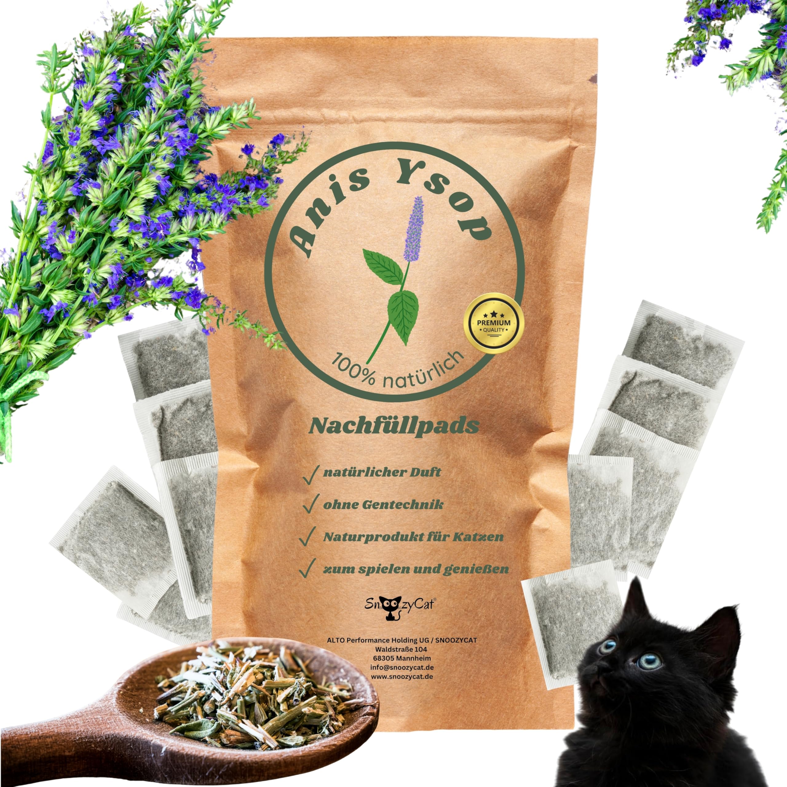 Hyssop Anise Valerian Refills for Cats - Give your cat the best with our premium refill pads. These natural ingredients not only promote your cat's well-being, but also ensure hours of play. Natural ingredients: Our refill pads are made from 100 natural ingredients, known for their soothing properties. Anise Hyssop with Valerian offers a pleasant scent that attracts cats, while having a relaxing effect that reduces stress and anxiety. Easy to use: The pads are easy to use and can be easily inserted into cat toys or cat trees. Spark your cat's interest and provide hours of extra play that are both mentally and physically stimulating. Suitable for all cats: Whether you have a playful kitten or a calm senior cat, our refill pads are suitable for cats of all ages. They promote curiosity and the natural play instinct and contribute to a happy and active cat life. PREMIUM MANUFACTURING: Each refill is made with the utmost care to ensure maximum freshness and aroma. So your cat can get the most out of their playing experience. Treat your cat with our anise hyssop valerian refill pads and bring pleasure and relaxation to your everyday life. Ideal for all cat lovers who place emphasis on the well-being of their pets. Benefits at a glance: Filled with 100 natural anise hyssop that soothes and relaxes your cat. Easy to replace and compatible with many scratch toys and furniture. A long-lasting scent that encourages your cat to play. Safe and non-toxic: specially designed for the well-being of your cat. Promotes active play and ensures a comfortable environment. Give your cat special play fun and ensure more relaxation and joy in everyday life. Play only under supervision DIRECTIONS FOR USE To be played only under supervision10-Pack Pads for Long-Term Use: With 10 refill pads, you always have a supply of fresh pads to revitalize your cat's toys at any time. Dimensions: approximately 7 cm x 4 cm (there may be a slight difference). Suitable for all cats, young or old, our refill pads are suitable for cats of all ages and help stimulate your cat's curiosity and play instinct. Easy to Use: The pads are easy to insert into the cat toy for quick and easy refreshment. Simply place an anise hyssop refill pad in the designated compartment of the cat toy and you're done. A safe and natural way to enrich and relax your cat's environment. Sustainable and Eco-Friendly: We value sustainability. The refill pads are environmentally friendly and allow your cat to fully enjoy playing. The pads must be inserted into a toy, as the refill pad isolates the tiger's force cannot always withstand. Suitable for most toys: The refill pads are versatile and fit most common cat toys. Simply replace it and extend your cat's playing fun. They naturally fit best with our handmade and refillable cat cushions - Convince yourself of the love for cats that we invest in our products. Natural and safe: Our refill pads are made from safe materials specially designed for cats. They are non-toxic and allow your cat to play without worries. High-quality workmanship: Each pad is carefully processed to ensure maximum freshness and aroma. This will help your cat get the most out of their play experience. High Quality Anise Hyssop or also known as "Valerian Scent": Each refill is filled with 100 natural anise hyssop, for a soothing and refreshing scent experience your cat will love. Improves Quality of Life: Anise hyssop is specially selected to meet the needs of cats, the scent is known to improve your pet's well-being and zest for life, and provides a calming effect and can help reduce stress and anxiety in cats, especially in new or challenging environments. Recharges avec hysope anis et valériane pour chat - Offrez à votre chat le meilleur avec nos tampons de recharge de qualité supérieure. Ces ingrédients naturels favorisent non seulement le bien-être de votre chat, mais assurent également des heures de jeu. Ingrédients naturels : nos tampons de recharge sont fabriqués à partir d'ingrédients 100 naturels, reconnus pour leurs propriétés apaisantes. L'hysope anis à la valériane offre un parfum agréable qui attire les chats, tout en ayant un effet relaxant qui réduit le stress et l'anxiété. Facile à utiliser : les coussinets sont faciles à utiliser et peuvent être facilement insérés dans les jouets pour chats ou les arbres à chat. Réveillez l'intérêt de votre chat et fournissez des heures de jeu supplémentaires qui sont à la fois stimulantes mentalement et physiquement. Convient à tous les chats : que vous ayez un chaton ludique ou un chat senior calme, nos tampons de recharge conviennent aux chats de tous âges. Ils favorisent la curiosité et l'instinct naturel de jeu et contribuent à une vie heureuse et active du chat. Fabrication de qualité supérieure : chaque recharge est fabriquée avec le plus grand soin pour garantir un maximum de fraîcheur et d'arôme. Ainsi, votre chat peut tirer le meilleur parti de son expérience de jeu. Faites plaisir à votre chat avec nos tampons de recharge anis hysope à la valériane et apportez plaisir et détente à votre quotidien. Idéal pour tous les amoureux des chats qui mettent l'accent sur le bien-être de leurs animaux. Avantages en un coup d'œil : Rempli d'hysope anis 100 naturel qui apaise et détend votre chat. Facile à remplacer et compatible avec de nombreux jouets et meubles à griffer. Un parfum durable qui encourage votre chat à jouer. Sûr et non toxique : spécialement conçu pour le bien-être de votre chat. Favorise le jeu actif et assure un environnement confortable. Offrez à votre chat un plaisir de jeu particulier et assurez plus de détente et de joie au quotidien. Jouez uniquement sous surveillance MODE D'EMPLOI À jouer uniquement sous surveillanceLot de 10 tampons pour une utilisation à long terme : avec 10 tampons de recharge, vous avez toujours un stock de tampons frais pour revitaliser les jouets de votre chat à tout moment. Dimensions