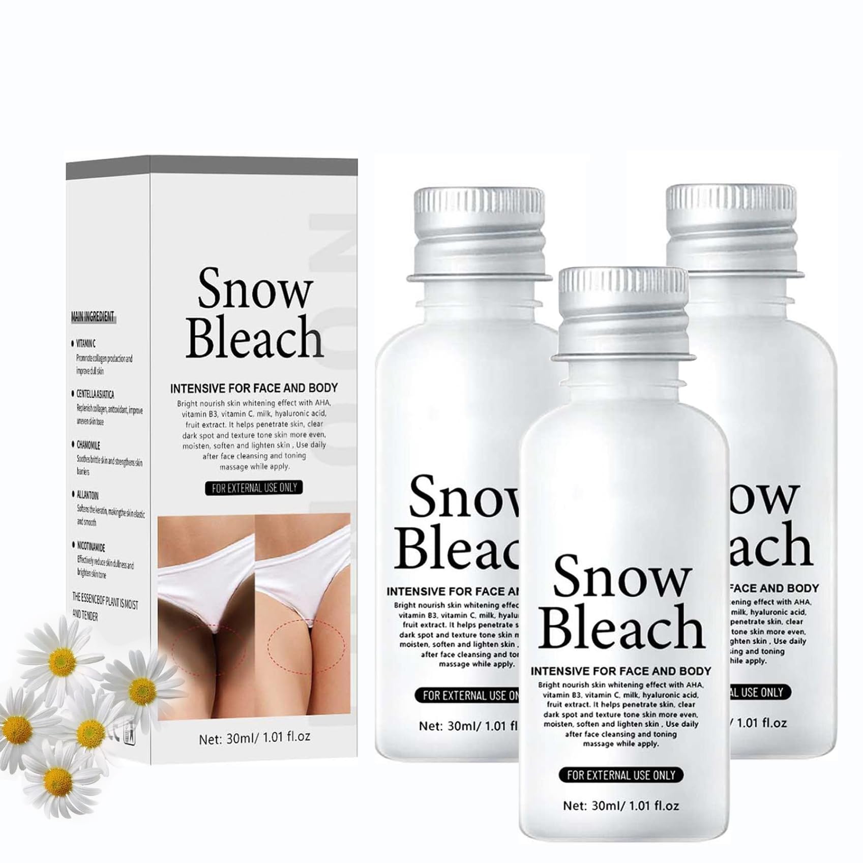 Skin Whitening Cream x1 SAFETY WARNING If you have any questions, please feel free to contact us, we will reply and offer you the solution within 24 hours.Easy to Use: Apply a suitable bleaching cream to the skin and gently massage the skin until completely absorbed. We suggest using it twice a day, morning and evening. Dark Spot Remover: The dark spot remover penetrates into the deeper layers of the skin, reduces the appearance of stubborn dark spots, especially effective for underarms, knuckles, inner thighs and intimate areas. Makes you more radiant and attractive. Snow Whitening Cream: Enhance your natural beauty with this intimate cream. You can use this cream on your underarms, knees, elbows, areola, nipples, neck, lips and other intimate areas, providing you with an effective and safe solution for annoying skin darkening. Widely Used: The skin whitening cream is suitable for designated body parts, lightens black skin for women. It's a good remover for underarms, knees, elbows, inner thighs, armpits, and bikini line. Enjoy a summer without dark spots: Are you at the beach? Take care of your body now. With our products, you can get the summer body you want. Skin Whitening Cream x1 AVERTISSEMENT DE SÛRETÉ Si vous rencontrez des questions, n'hésitez pas à nous contacter, nous vous répondrons et vous proposerons la solution dans les 24 heures.Facile à utiliser : appliquez une crème décolorante appropriée sur la peau et massez doucement la peau jusqu'à absorption complète. Nous vous suggérons de l'utiliser deux fois par jour, matin et soir. Dissolvant de taches brunes : Le dissolvant de taches brunes pénètre dans les couches plus profondes de la peau, réduit l'apparence des taches brunes tenaces, particulièrement efficace pour les aisselles, les articulations, l'intérieur des cuisses et les zones intimes. Vous rend plus radieux et attrayant. Crème de blanchiment des neiges : Améliorez votre beauté naturelle avec cette crème intime. Vous pouvez utiliser cette crème sur vos aisselles, vos genoux, vos coudes, votre aréole, vos mamelons, votre cou, vos lèvres et d'autres zones intimes, vous offrant ainsi une solution efficace et sûre pour les assombrissements gênants de la peau. Largement utilisé : la crème blanchissante pour la peau convient aux parties désignées du corps, éclaircit la peau noire pour les femmes. C'est un bon dissolvant pour les aisselles, les genoux, les coudes, l'intérieur des cuisses, les aisselles et la ligne de bikini. Profitez d'un été sans taches sombres : êtes-vous à la plage ? Prenez soin de votre corps maintenant. Grâce à nos produits, vous pouvez obtenir le corps d'été que vous souhaitez.