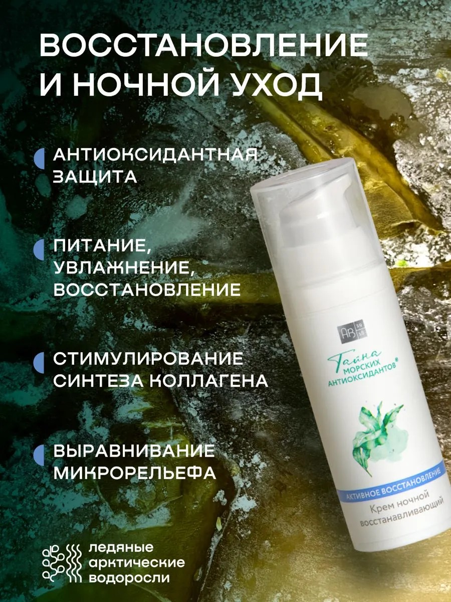 Нежный, легко впитывающийся увлажняющий ночной крем с морскими антиоксидантами для лица, шеи и зоны декольте. Ускоряет процессы обновления и восстановления. За ночь кожа преображается, увлажняется и наполняется живой силой витаминов и микроэлементов из арктической ламинарии, а утром выглядит свежей и отдохнувшей. Крем подходит для любого типа кожи.