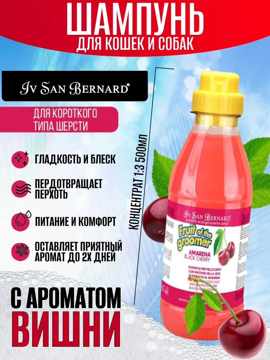 Iv San Bernard ISB Fruit of the Groomer Black Cherry Шампунь (гигиена) для короткой шерсти кошек и собак с протеинами шелка 500 мл