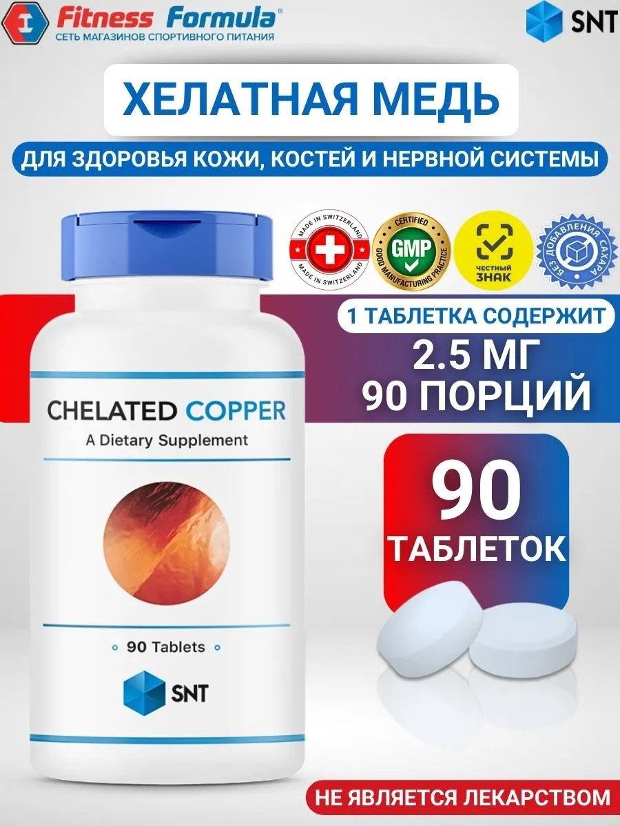 SNT SNT Хелатная медь 2.5 мг, 90 таблеток, Chelated copper