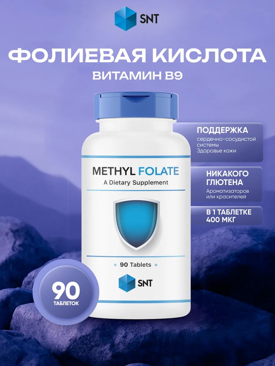 | Торговое наименование | Биологически активная добавка к пище METHYL FOLATE SNT / МЕТИЛ ФОЛАТ СНТ, таблетки по 300 мг №60, 90, 150 |