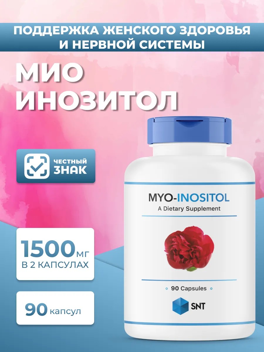 Мио инозитол (myo inositol) — активная форма инозитола (inositol), витаминоподобного вещества, широко применяемого для поддержания женского здоровья и нормализации обмена веществ. Добавка SNT Mio Inositol содержит оптимальную дозировку мио инозитола 1500 мг, обеспечивая максимальную эффективность и хорошее усвоение.