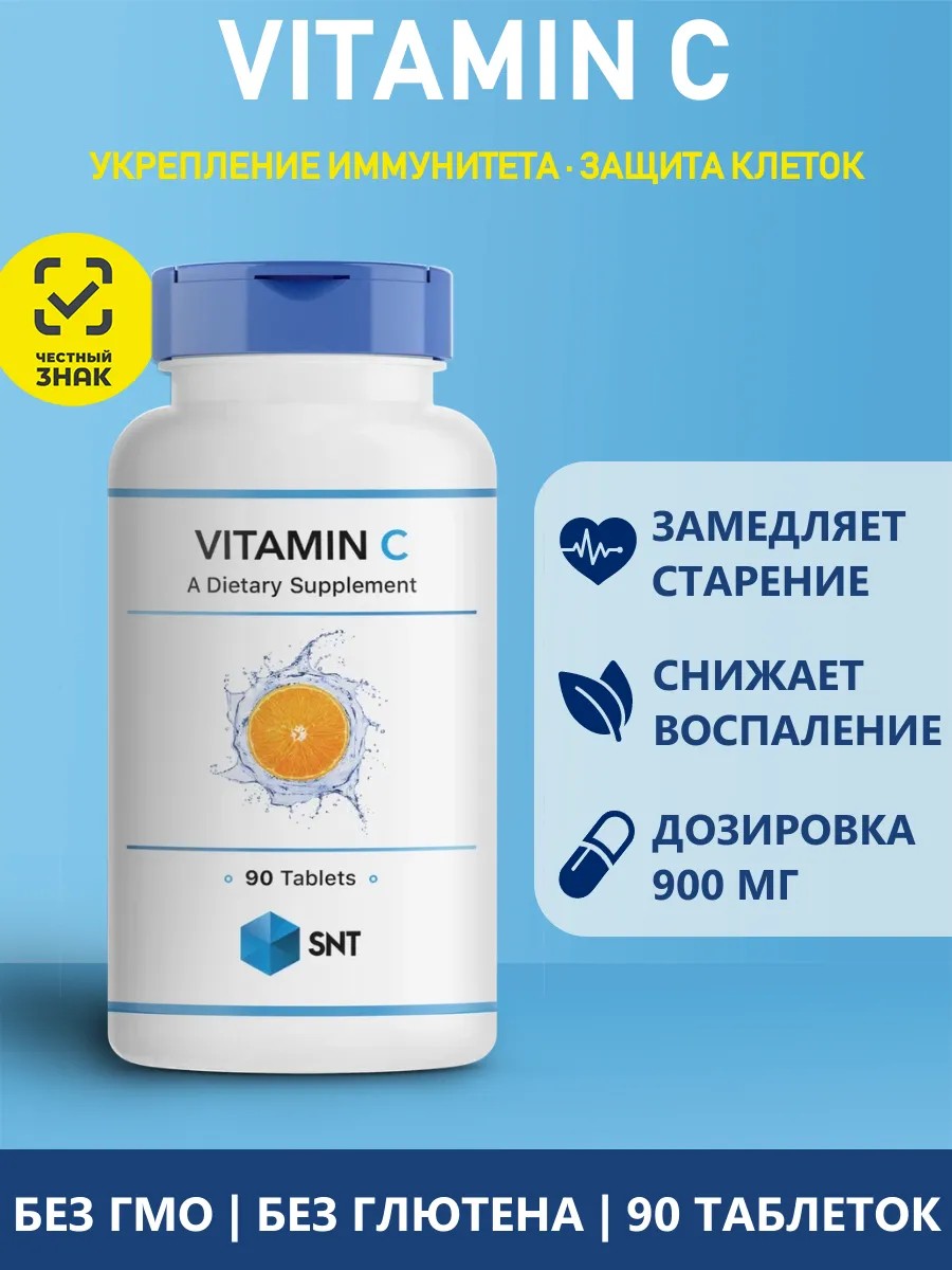 SNT Vitamin C 900 мг, 90 таблеток — источник высокой дозы витамина C для поддержки иммунной системы и здоровья кожи