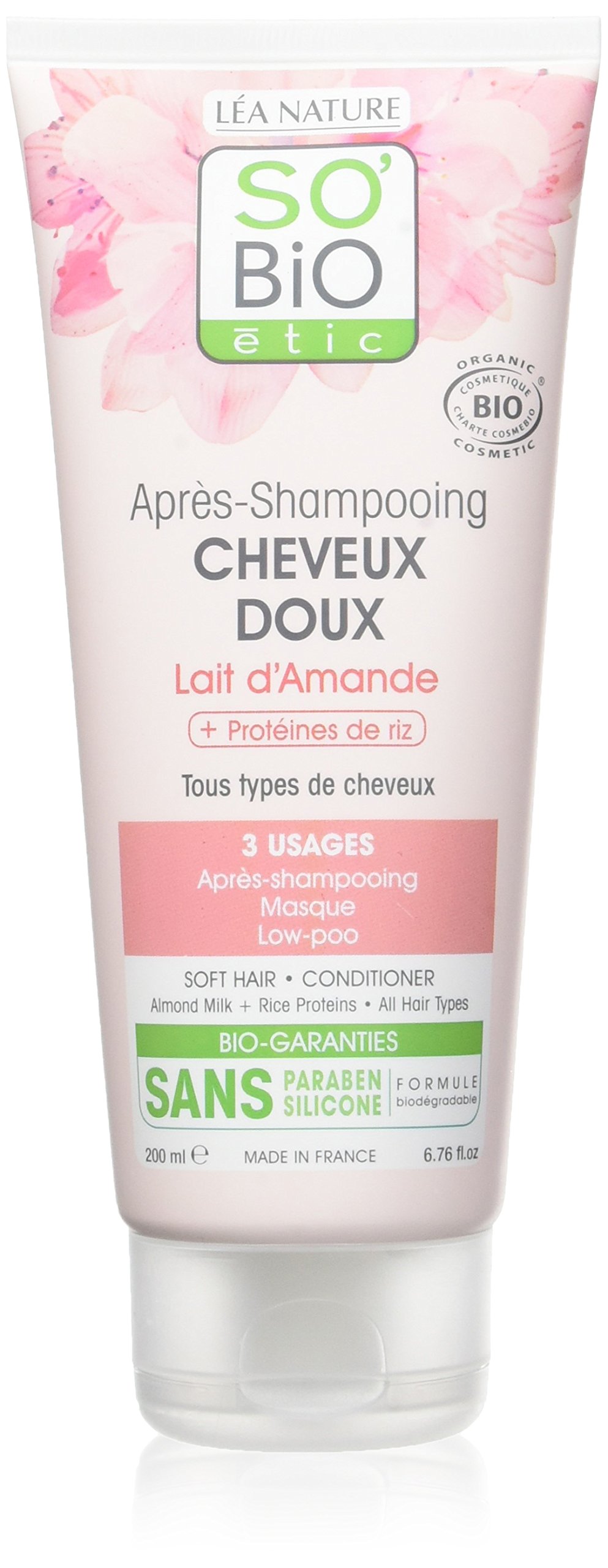 For mild hair, the almond milk conditioner and rice proteins are suitable for all hair types. Gently detangles and moisturizes your hair. The styling is simple, your hair becomes supple and light again and durably durable. Léa Nature Labors have developed a number of environmentally friendly and natural bristles. The formula without silicone contains a special complex based on vegetable resin for a soft effect. 3 applications: conditioner, mask, low-Poo. Without parabens. Biodegradable formula. Apply to mid-lengths and ends after shampoo. Leave on for 1-2 minutes. Rinse thoroughly. Do not swallow (keep out of the reach of children). Avoid contact with the eyes. Do not throw into nature.98 ingredients of natural origin, 11 organic ingredients. Paraben-free, silicone-free, biodegradable formula. Apply to mid-lengths and ends after shampoo. Leave on for 1-2 minutes. Rinse thoroughly. Tips "hair beauty": 1) Avoid washing the hair every day. Put on your shampoo and replace it with this care product. Use it as a low pool. 2) You can also use it as a mask, extend the application time to 5 minutes. Do not swallow (keep out of the reach of children). Avoid contact with the eyes. Do not throw it into nature. For soft hair, the almond milk and rice protein rinse is suitable for all hair types. It detangles and provides your hair with gentle moisture. Styling is easy, your hair becomes supple and light and durable.SO'BiO étic Après-Shampoing Milk Bio amandelmelk, 200 ml, 2 stuks Voor mild haar is de amandelmelk conditioner en rijst proteïnen geschikt voor alle haartypes. Ontwart en hydrateert zachtjes in je haar. De styling is eenvoudig, je haar wordt weer soepel en licht en duurzaam duurzaam. Léa Nature Labors hebben een aantal milieuvriendelijke en natuurlijke haren ontwikkeld. De formule zonder siliconen bevat een speciaal complex op basis van plantaardige hars voor een zacht effect. 3 toepassingen: conditioner, masker, low-Poo. Zonder parabenen. Biologisch afbreekbare formule. Na de shampoo op mi-lengtes en punten aanbrengen. 1-2 minuten laten inwerken. Grondig uitspoelen. Niet inslikken (buiten het bereik van kinderen bewaren). Vermijd contact met de ogen. Niet in de natuur gooien.98 ingrediënten van natuurlijke oorsprong, 11 biologische ingrediënten. Zonder parabenen, zonder siliconen, biologisch afbreekbare formule. Na de shampoo op halve lengtes en punten aanbrengen. 1-2 minuten laten inwerken. Grondig uitspoelen. Tips "schoonheid van het haar": 1) Vermijd het wassen van de haren elke dag. Zet je shampoo op en vervang het met dit verzorgingsproduct. Gebruik het als lage zwembad. 2) Je kunt het ook als masker gebruiken, verleng de inwerktijd tot 5 minuten. Niet inslikken (buiten het bereik van kinderen houden). Vermijd contact met de ogen. Gooi het niet in de natuur. Voor zacht haar is de spoeling met amandelmelk en rijstproteïnen geschikt voor alle haartypes. Het ontwart en verzorgt je haar zacht van vocht. Het stylen is eenvoudig, je haar wordt soepel en licht en duurzaam.