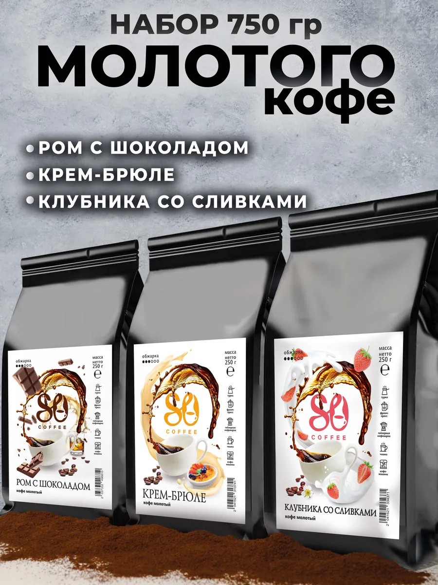 So Coffee Кофе молотый 250г х 3шт Ром, Крем-брюле, Клубника